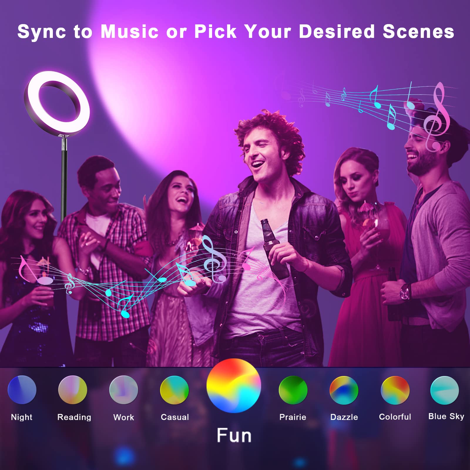 LED Stehlampe, 42W Superhelle 16 Millionen RGBCW Farbwechsel WiFi Smart Doppelseitige Wohnzimmer, Kompatibel mit Alexa/Google Home, Musik Sync, Stufenlos Dimmbare Leselampe für Schlafzimmer