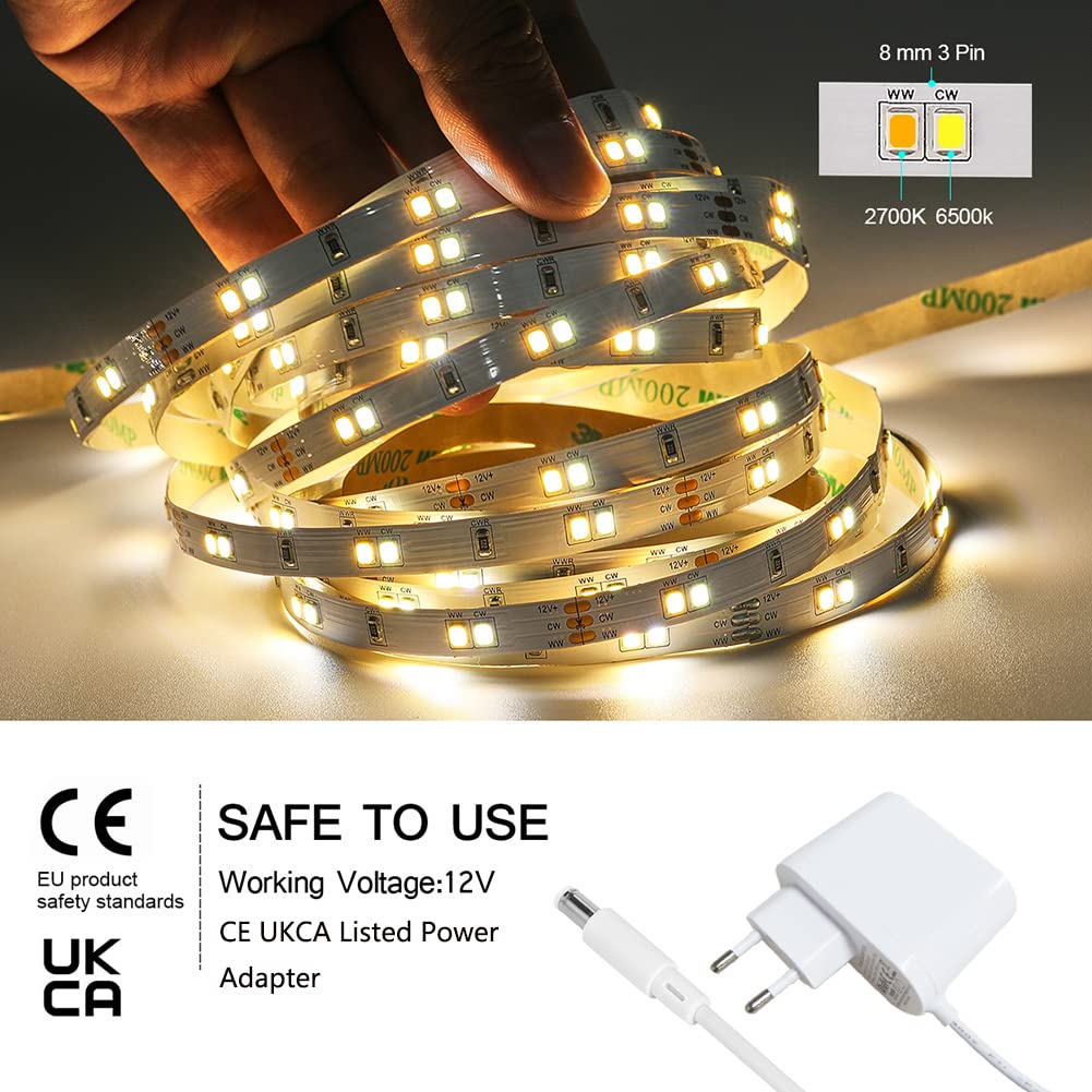 Led Strip 20m, Streifen 2700K-6500K 12V Lichtband Kaltweiss Warmweiss Flexibel DIY, Smart Selbstklebend Mit Fernbedienung und APP, Dimmbar, für Küche, Party, Schlafzimmer