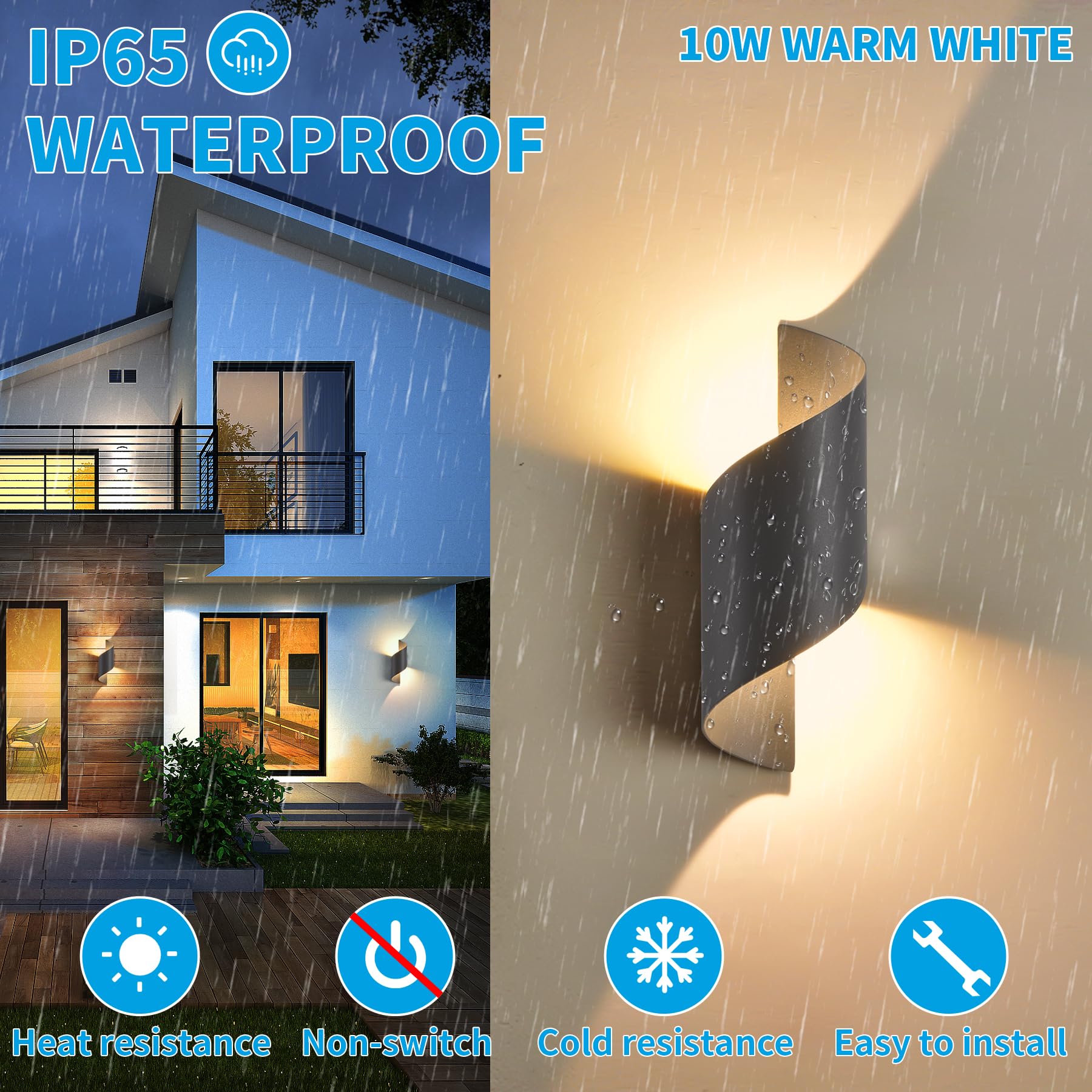 LED Wandleuchte Innen/Aussen,10W Aussenleuchte Wandlampe,IP65 wasserdichte Aussenleuchte 3000K Warmweiss Aussenleuchten,Modern Up Down Dekorative Wandlichter für Garten,Wohnzimmer,Schlafzimmer Dunkelgrau