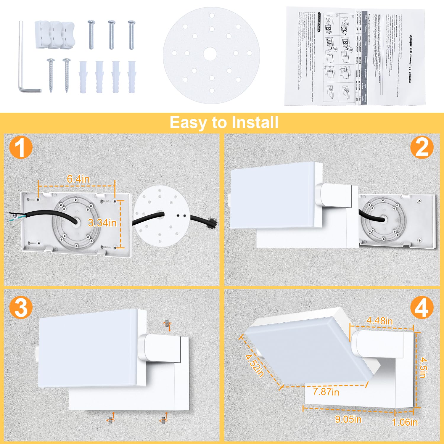 ledmo 4 Pack 60W Aussen Wandleuchten LED 5000 Lumen Weiss wandlampen Aussen mit 360° Schwenkbar LED Panel Aussenlampen Warmweiss 3000K Wasserdicht IP65 für Terrasse Eingang Garten