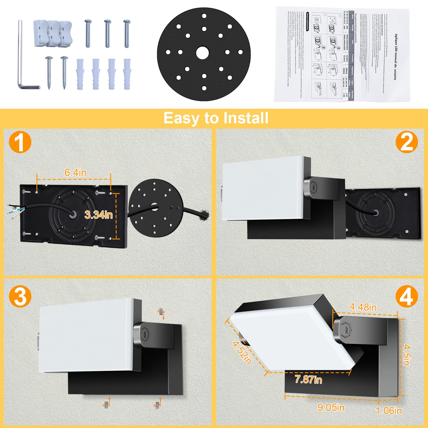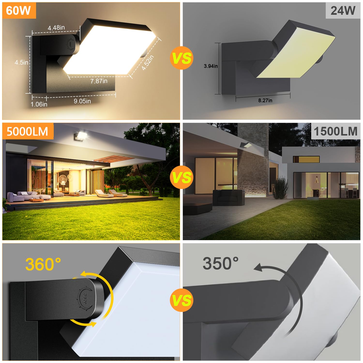 ledmo 4 Pack 60W LED Wandleuchte Aussen/Innen 5000 Lumen Modern Wandlampe Aussen Warmweiss 3000K Aussenwandleuchte mit 360° Schwenkbar LED Panel Aussenlampe Wasserdicht IP65 für Terrasse Eingang Garten