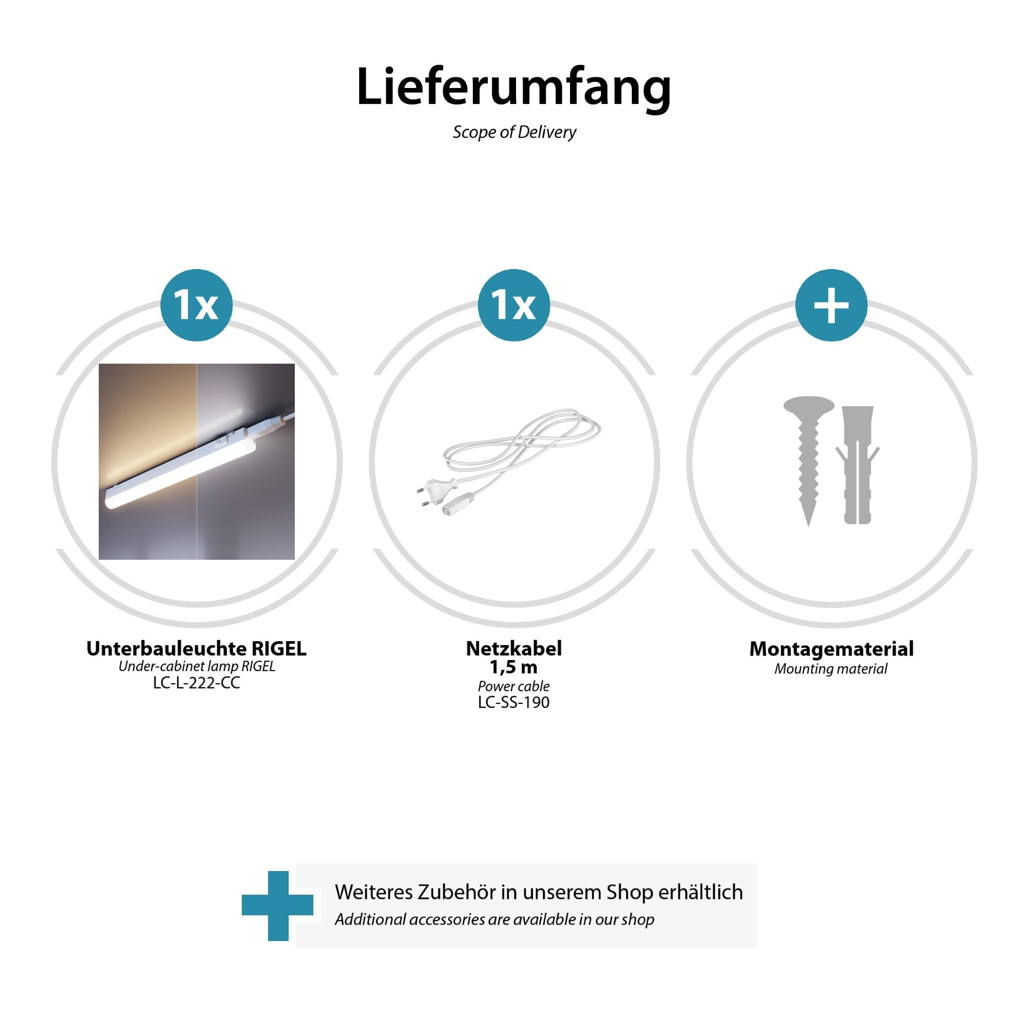 ledscom.de LED Unterbauleuchte RIGEL, Farbtemperatur einstellbar, Stecker, 26cm, 4,4 W, 395lm, warmweiss/weiss
