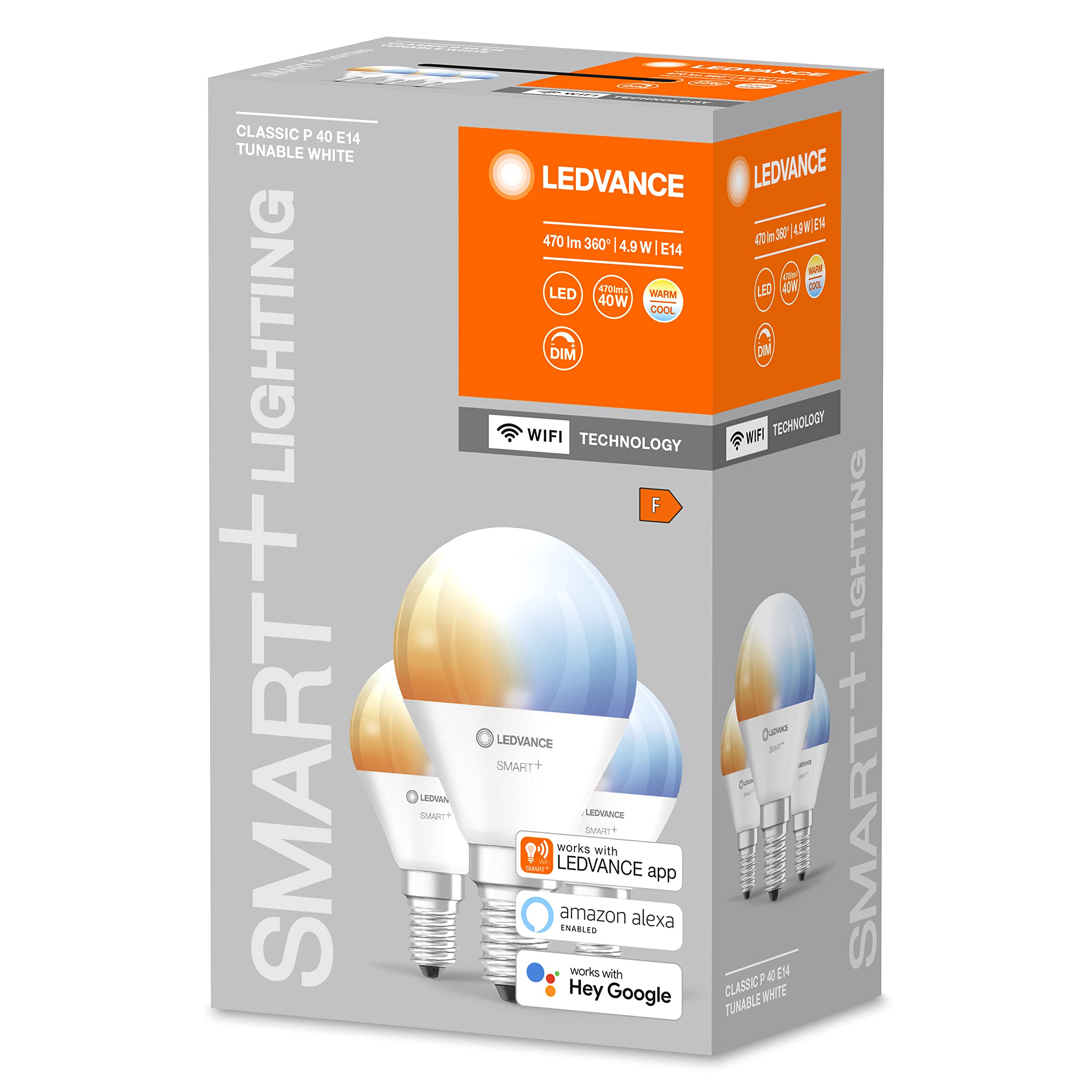 Ledvance Smarte LED-Lampe mit WiFi Technologie, Sockel E14, Dimmbar, Lichtfarbe änderbar (2700-6500K), ersetzt Glühlampen mit 40 W, SMART+ WiFi Mini Bulb Tunable White, 3er-Pack