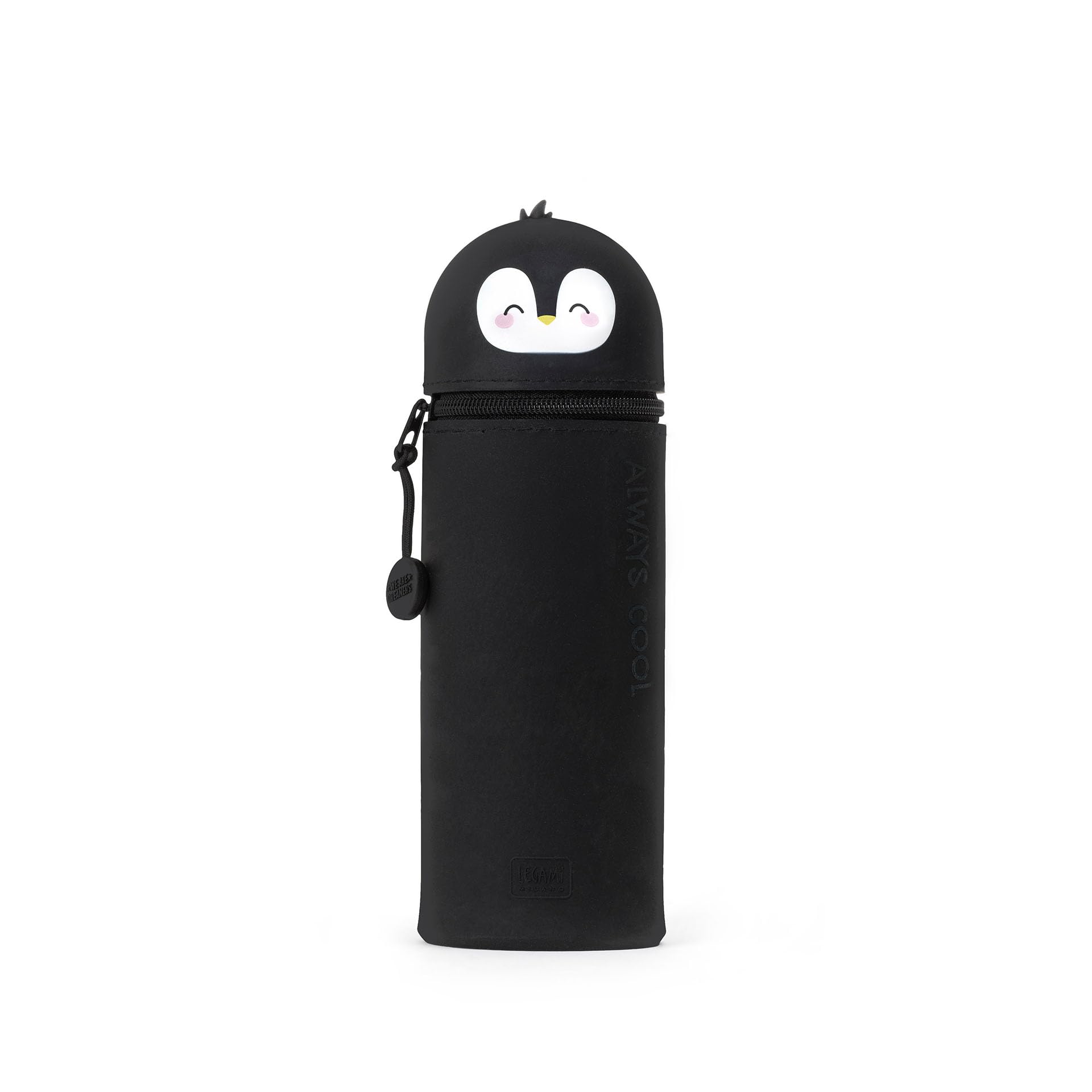 Legami - 2-in-1 weiche Silikontasche - Kawaii, Penguin Schultasche, Tischstifthalter, Reissverschluss, Silikon, Stiftetasche Buntstifte Marker, H 18,5 cm