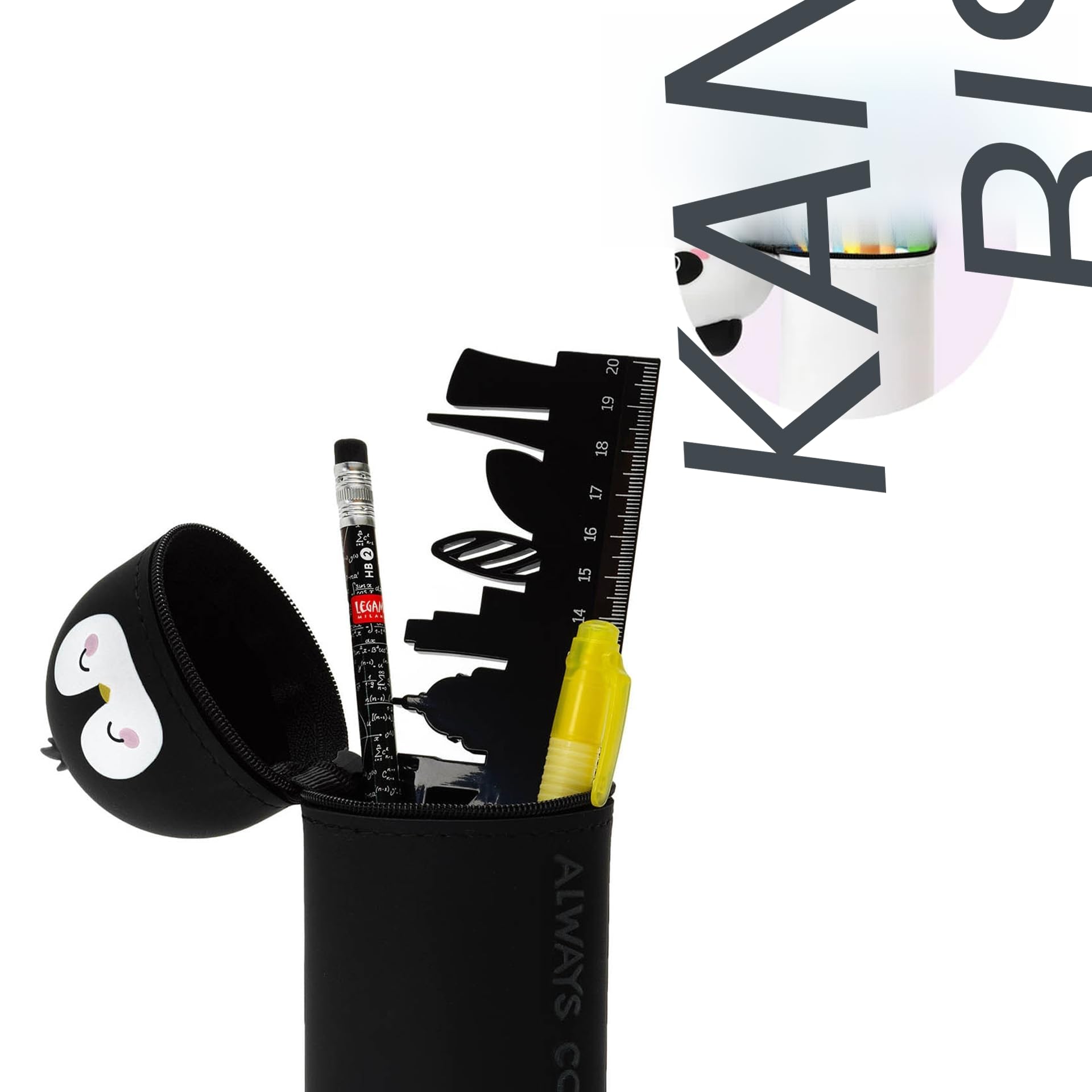 Legami - Kawaii 2-in-1 Schulmäppchen aus weichem Silikon, Tischstifthalter, Reissverschluss, Buntstifte, Marker