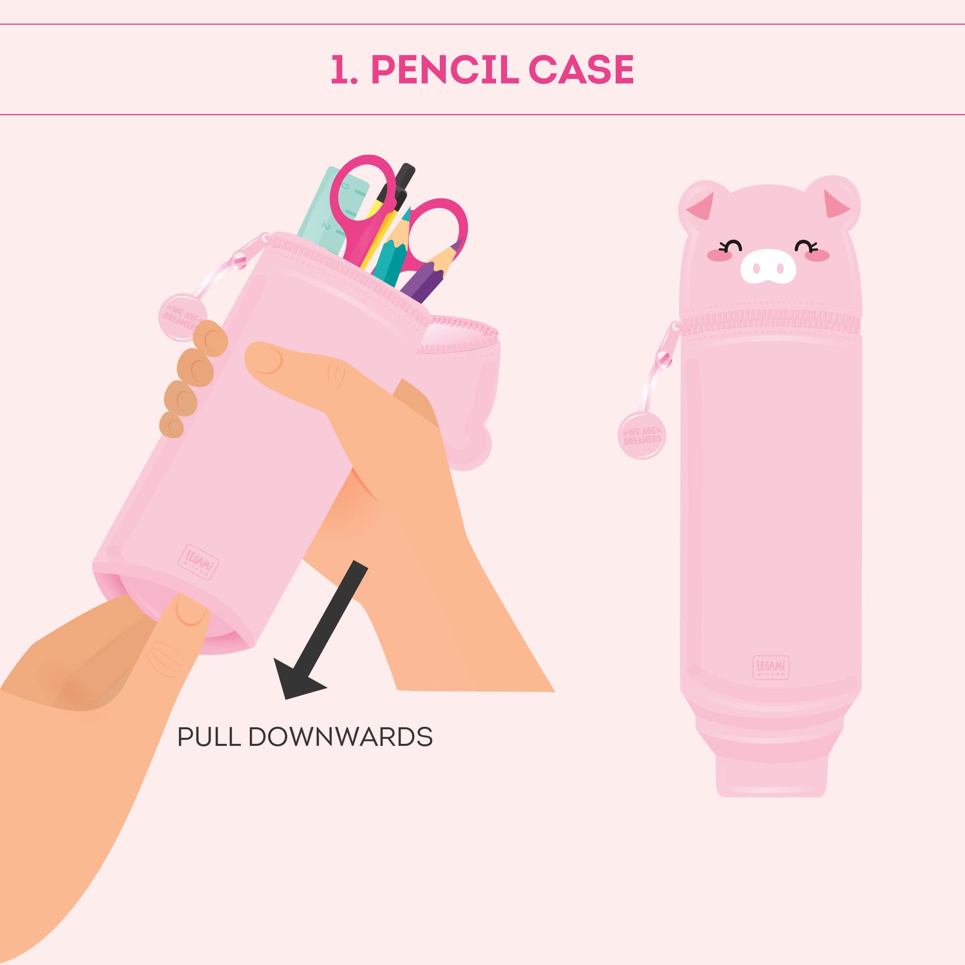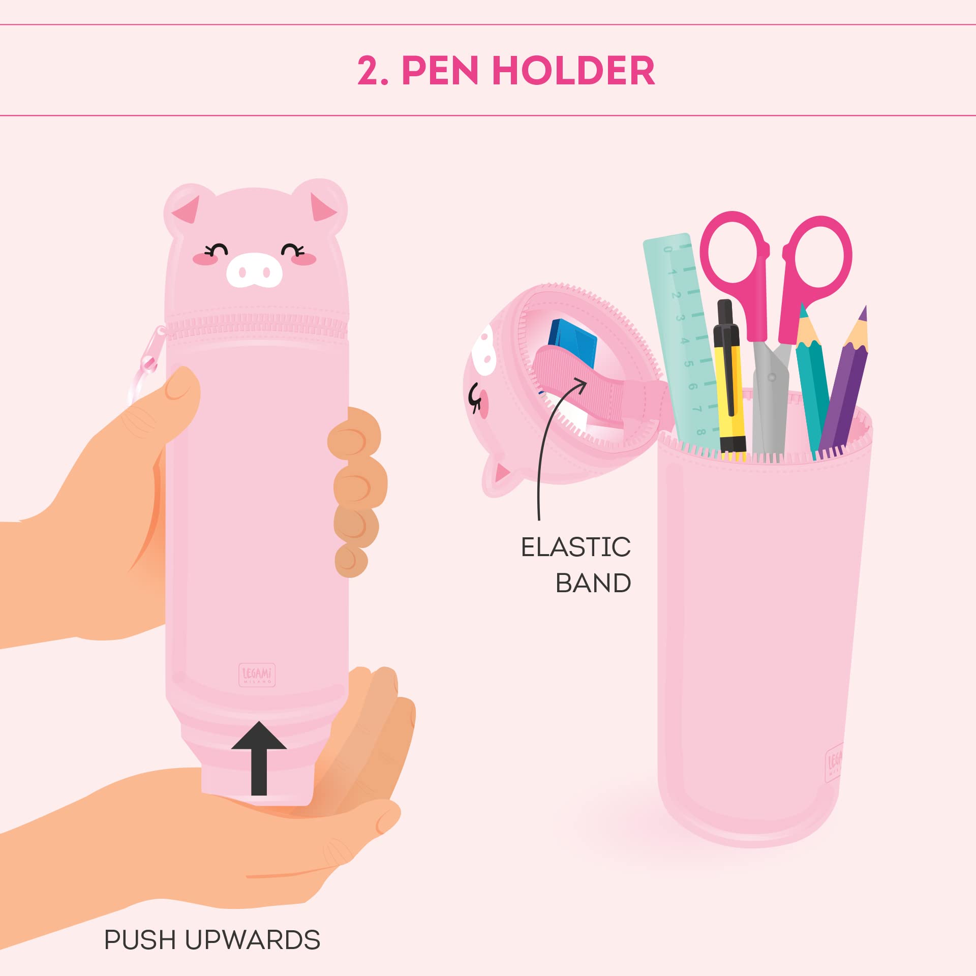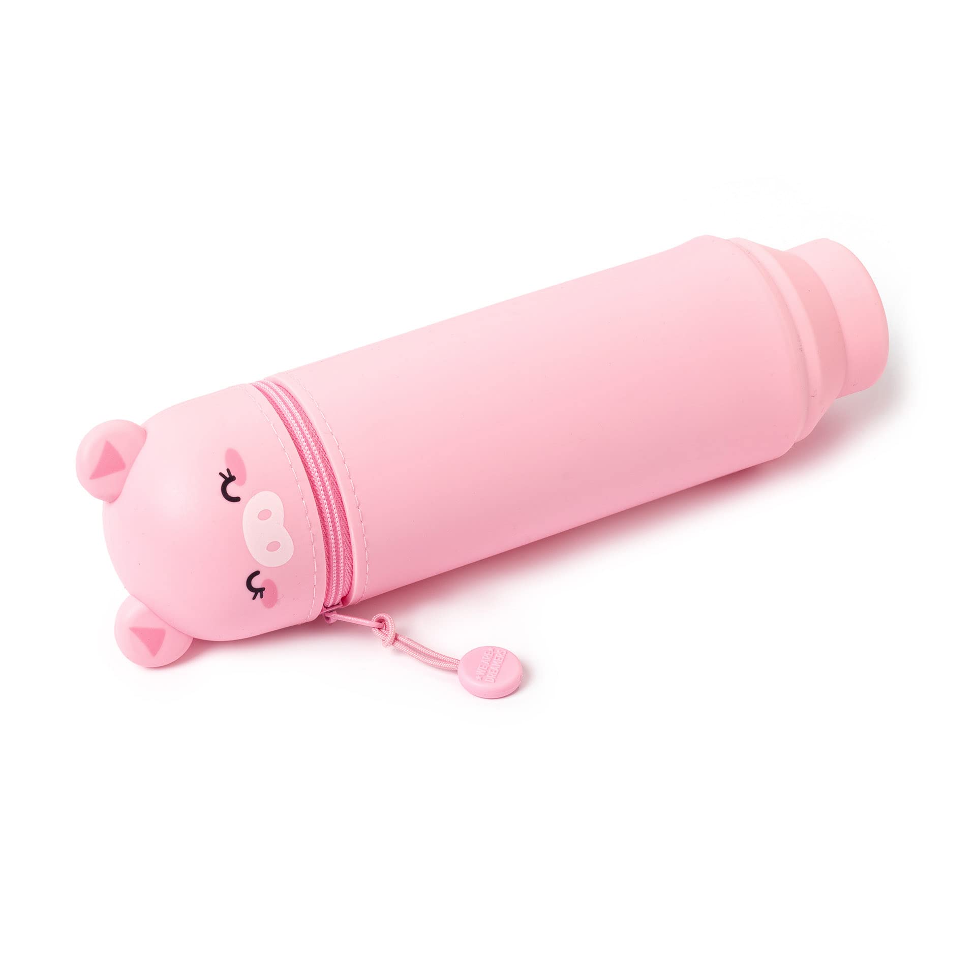 Legami - 2-in-1-Federmäppchen aus weichem Silikon, Kawaii, 6,3 x 18,5 cm, Piggy-Thema, Federmäppchen und Stifthalter, einziehbare Kapazität, Reissverschluss