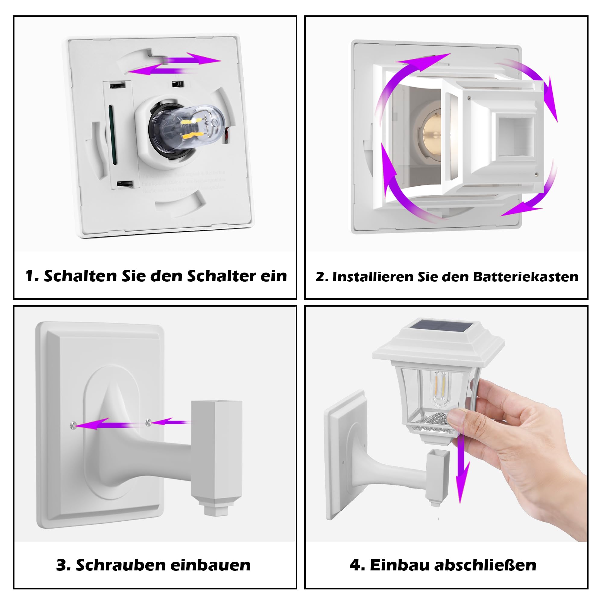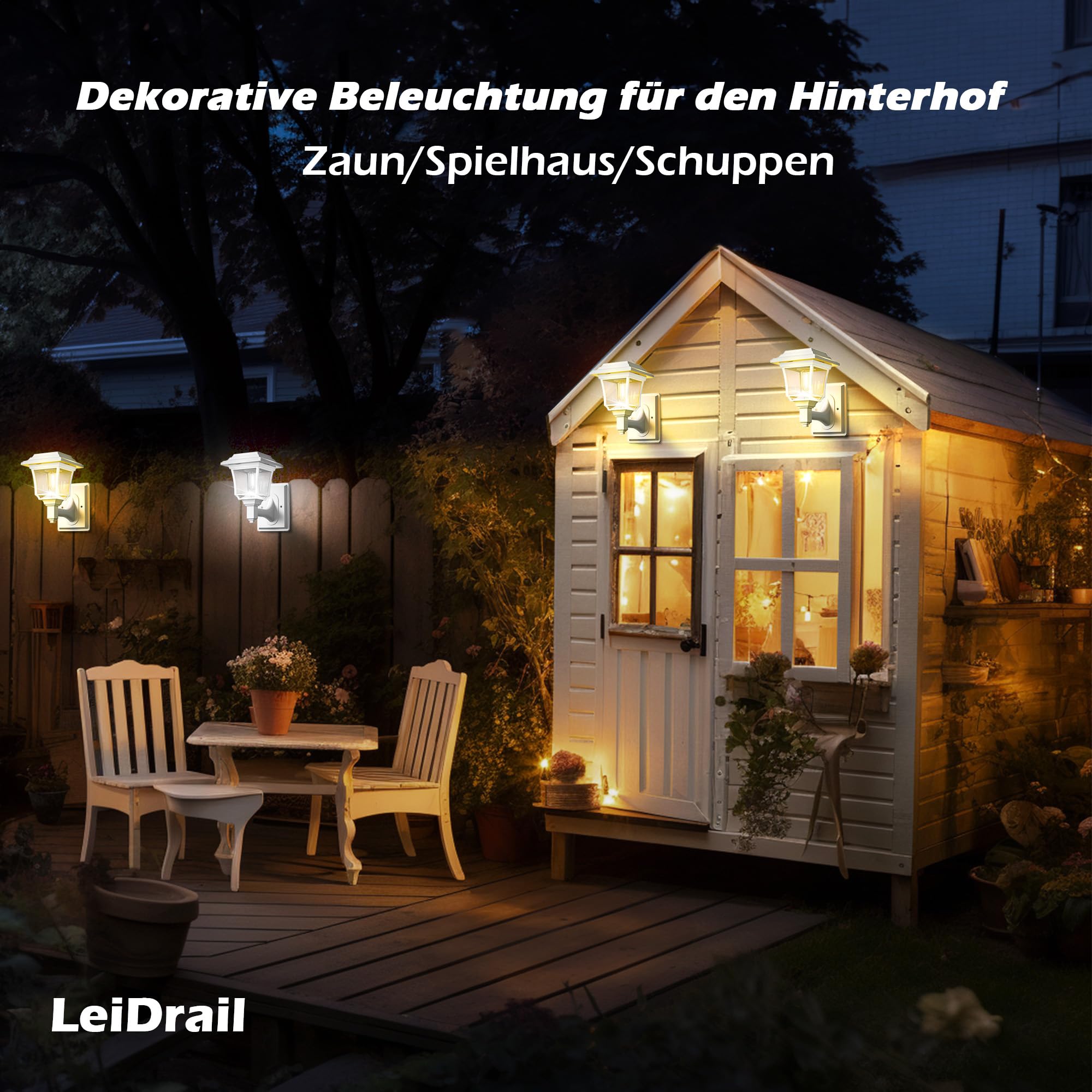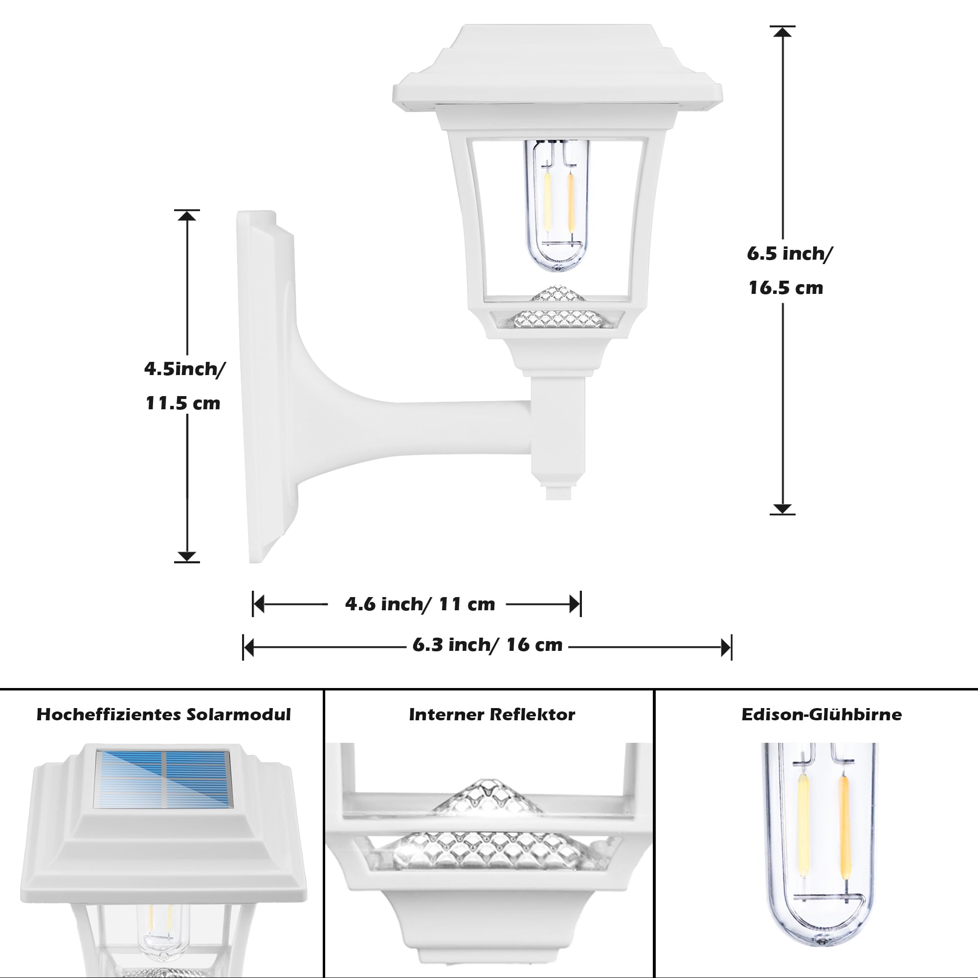 LeiDrail Solarlampen für Aussen, 2 Modes Edison Solar Wandleuchte Aussen Wasserdicht 15 Lumen Solarleuchten für Aussen Dekorativ für Zaun Hof Hühnerstall Spielhaus Weiss (2 Stück)