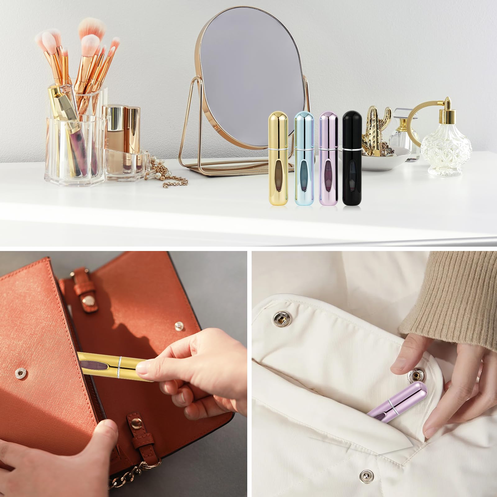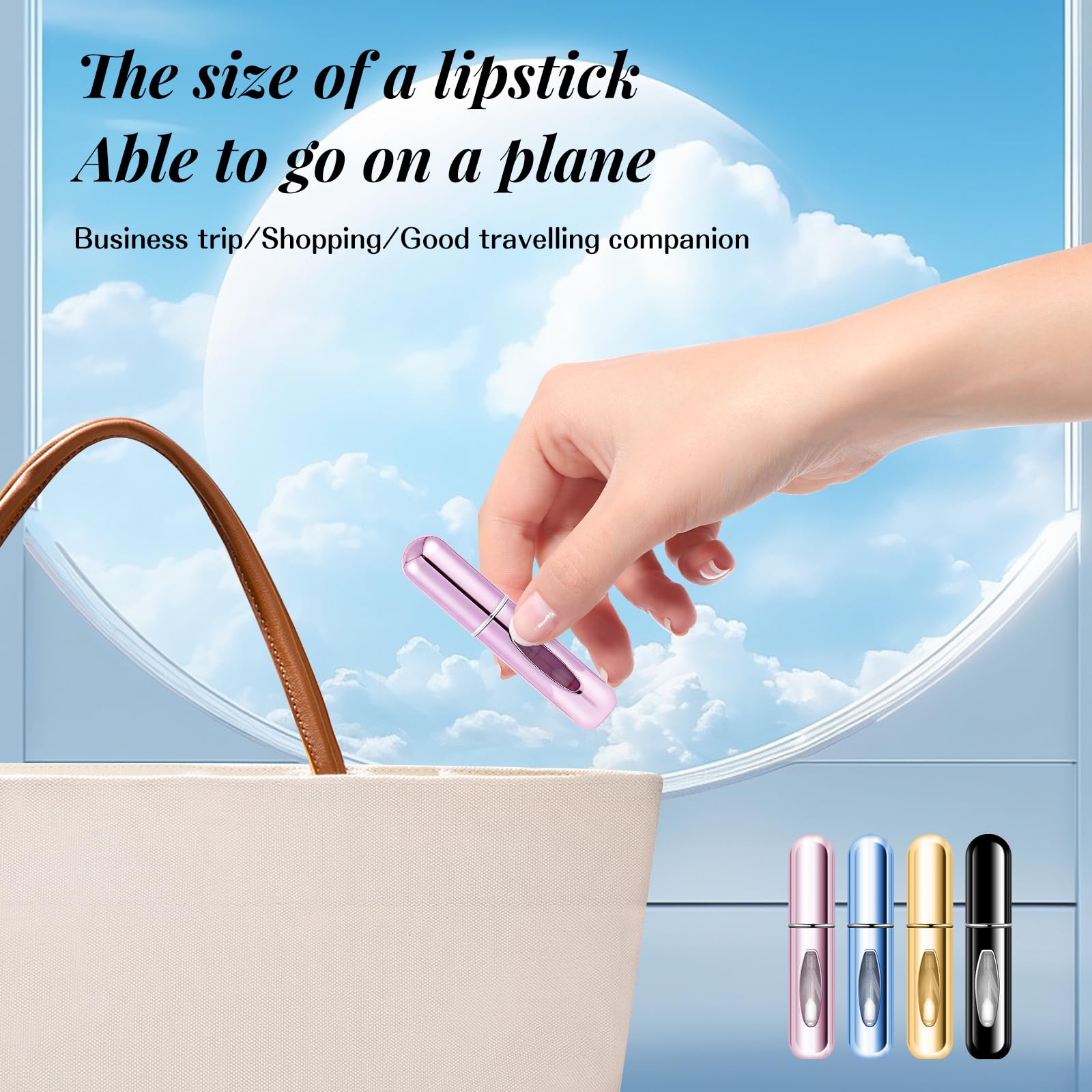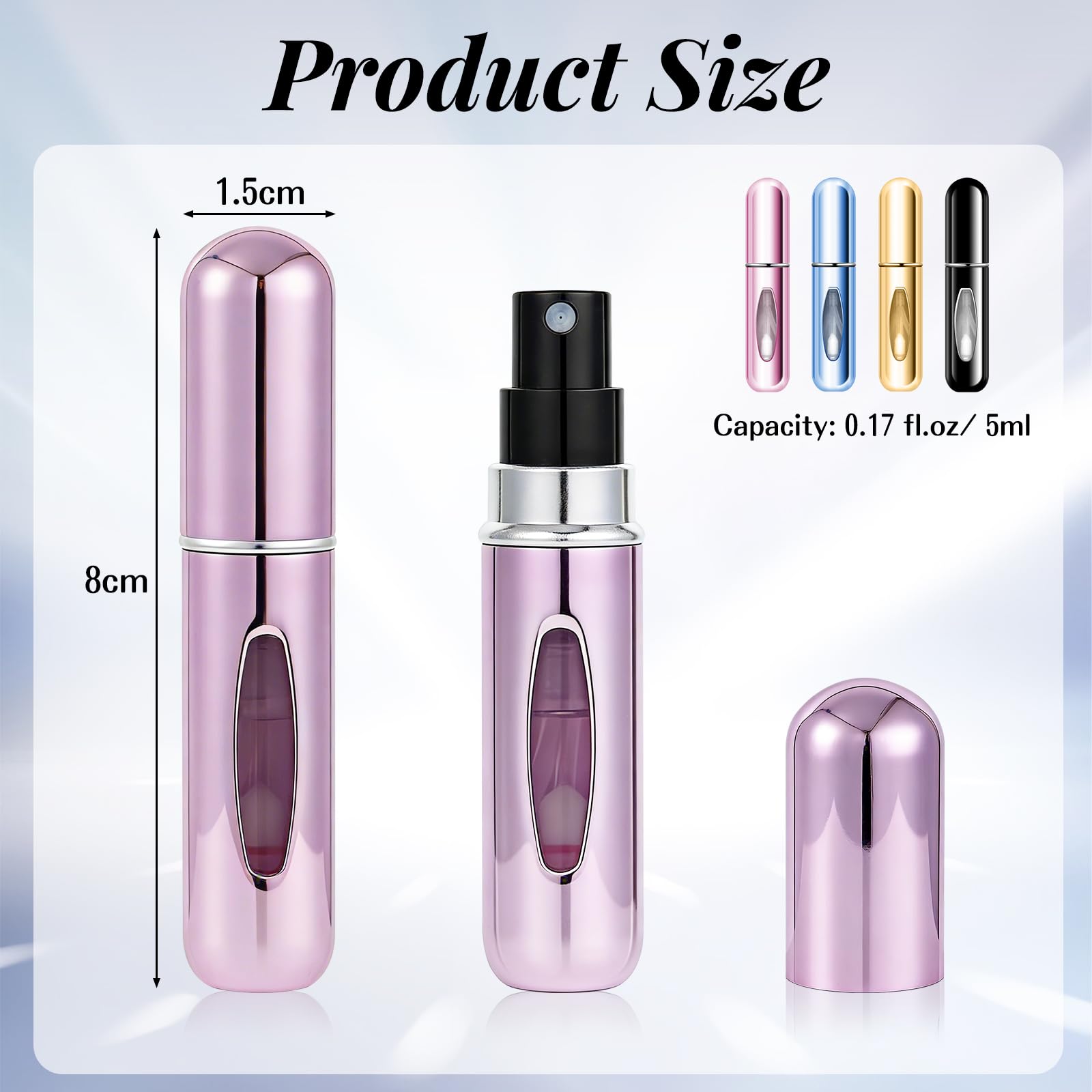 Die Leikedun Parfuemzerstaeuber im 4er-Set sind kompakte, nachfuellbare Mini Spruehflaschen, die ideal fuer Reisen, Handtasche, Ferien und Flugreisen geeignet sind. Mit einem Fassungsvermoegen von 5 ml bieten diese Taschenzerstaeuber die perfekte Loesung, um Ihr Lieblingsparfuem jederzeit griffbereit mitzunehmen.