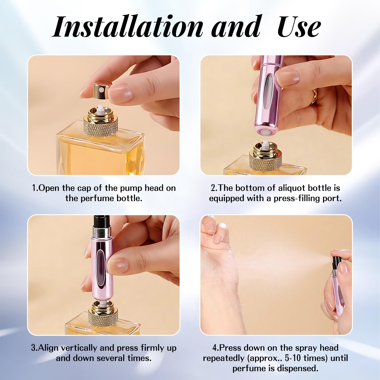 Die Leikedun Parfuemzerstaeuber 5 ml im 4er-Set vereinen Mobilitaet, Funktionalitaet und praktisches Design und sind die ideale Wahl, um Parfuem sicher, sauber und bequem ueberallhin mitzunehmen.