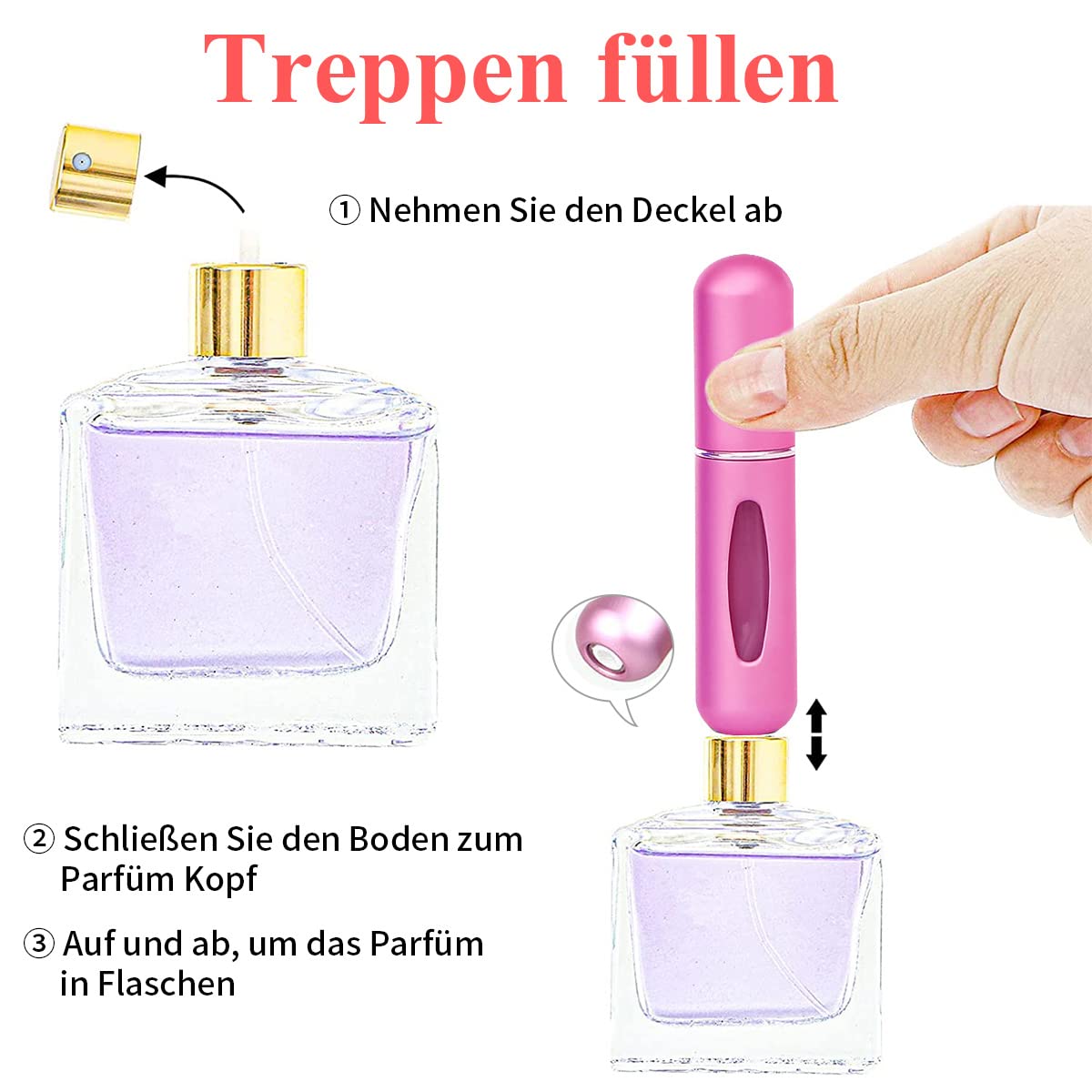 Durch das portable und elegante Design sind die Parfuemzerstaeuber sowohl fuer Damen als auch fuer Herren geeignet und ideal fuer Reisen, Geschaeftsreisen, Urlaub oder den Alltag.