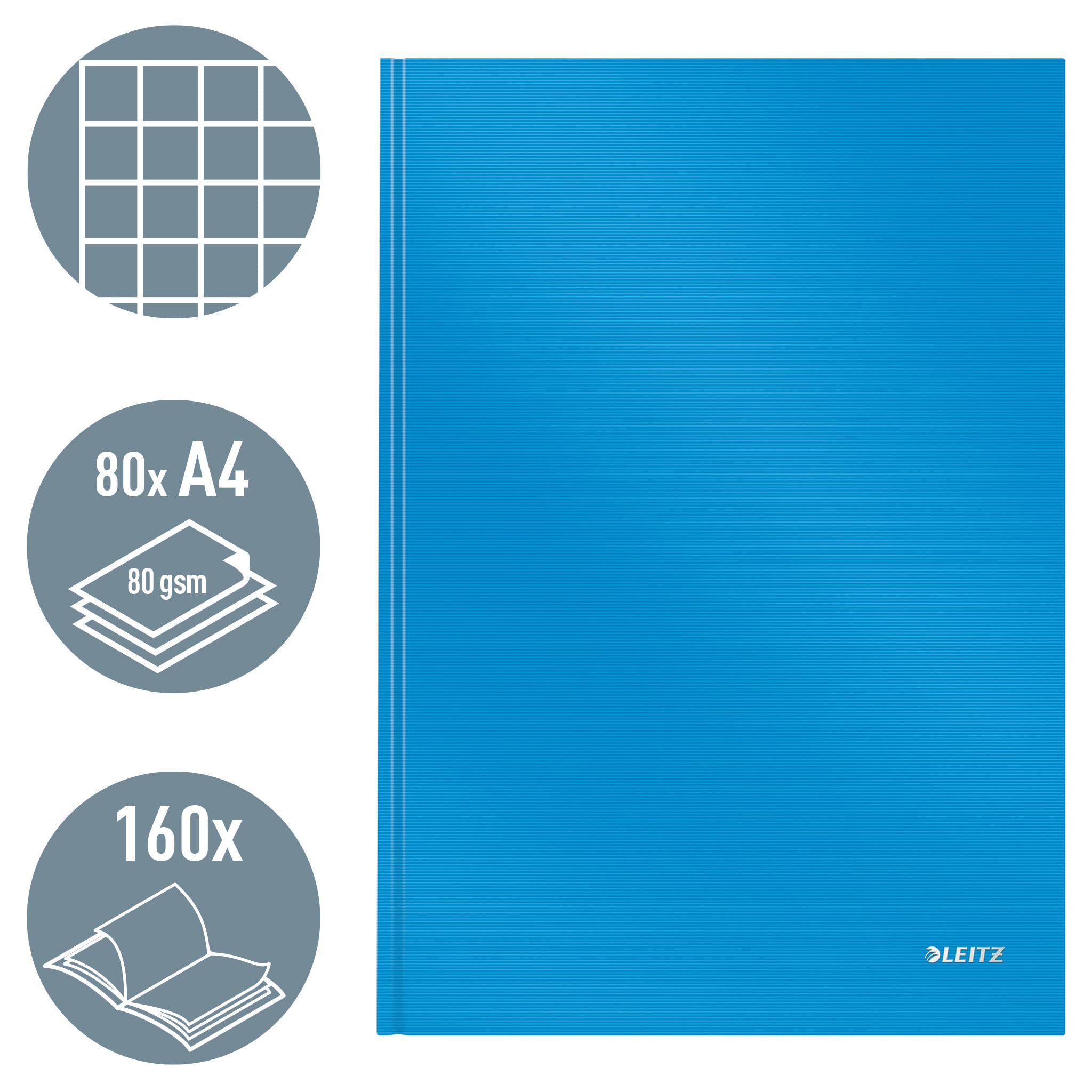 Leitz A4 Notizbuch kariert, 160 Seiten, 80 Blatt FSC zertifiziertes 80 g/m² Papier, Stabiler, kratzfester Hardcover-Einband, Für Büro, Schule oder als Tagebuch, Solid Serie, Hellblau, 46640030