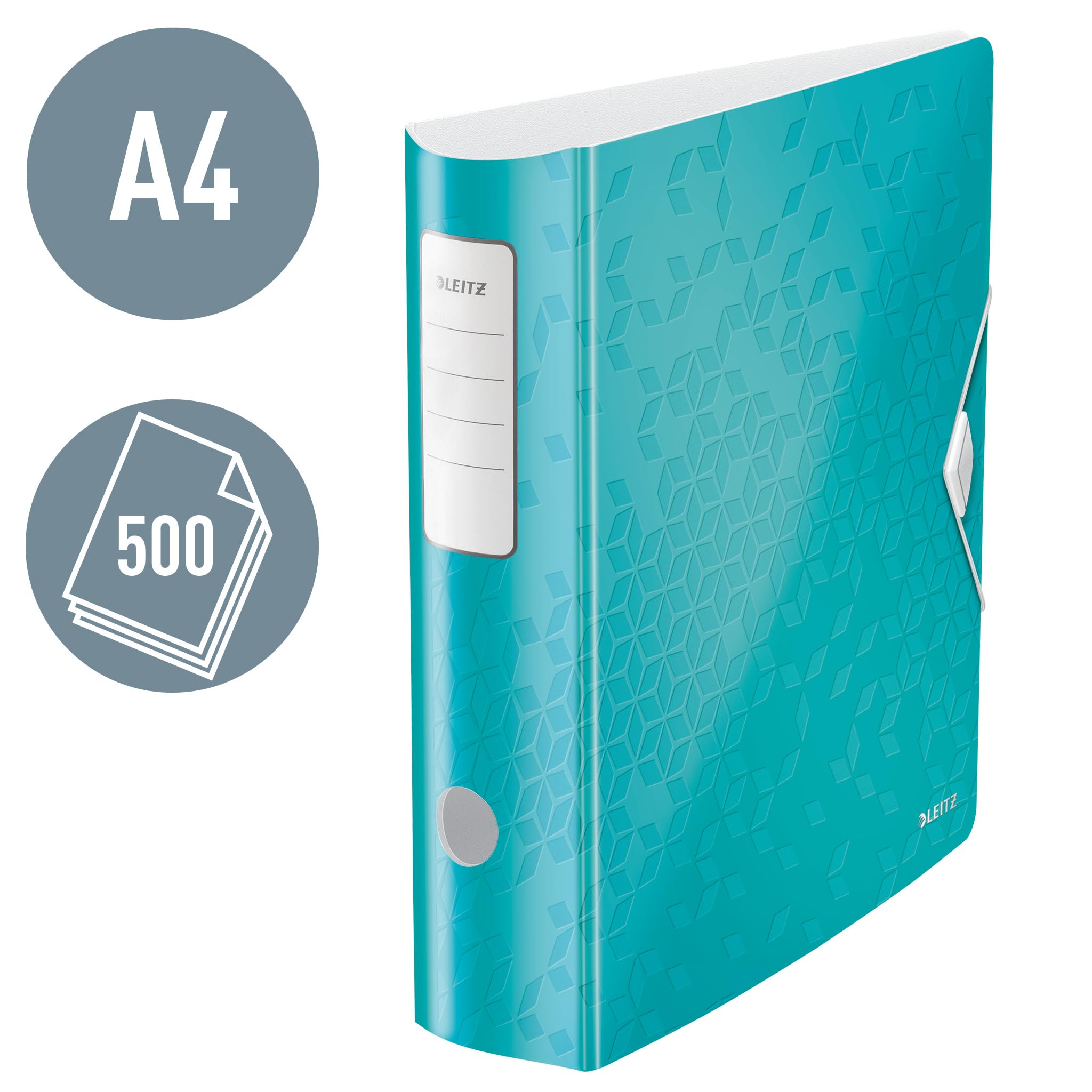 Leitz Qualitäts-Ordner 180° Active WOW, A4, Breit, Abgerundeter Rücken, 8,2 cm breit, Gummibandverschluss, Leichtes Polyfoam, Plastik-Ordner, WOW Serie, Eisblau, 11060051 (Packung mit 2)