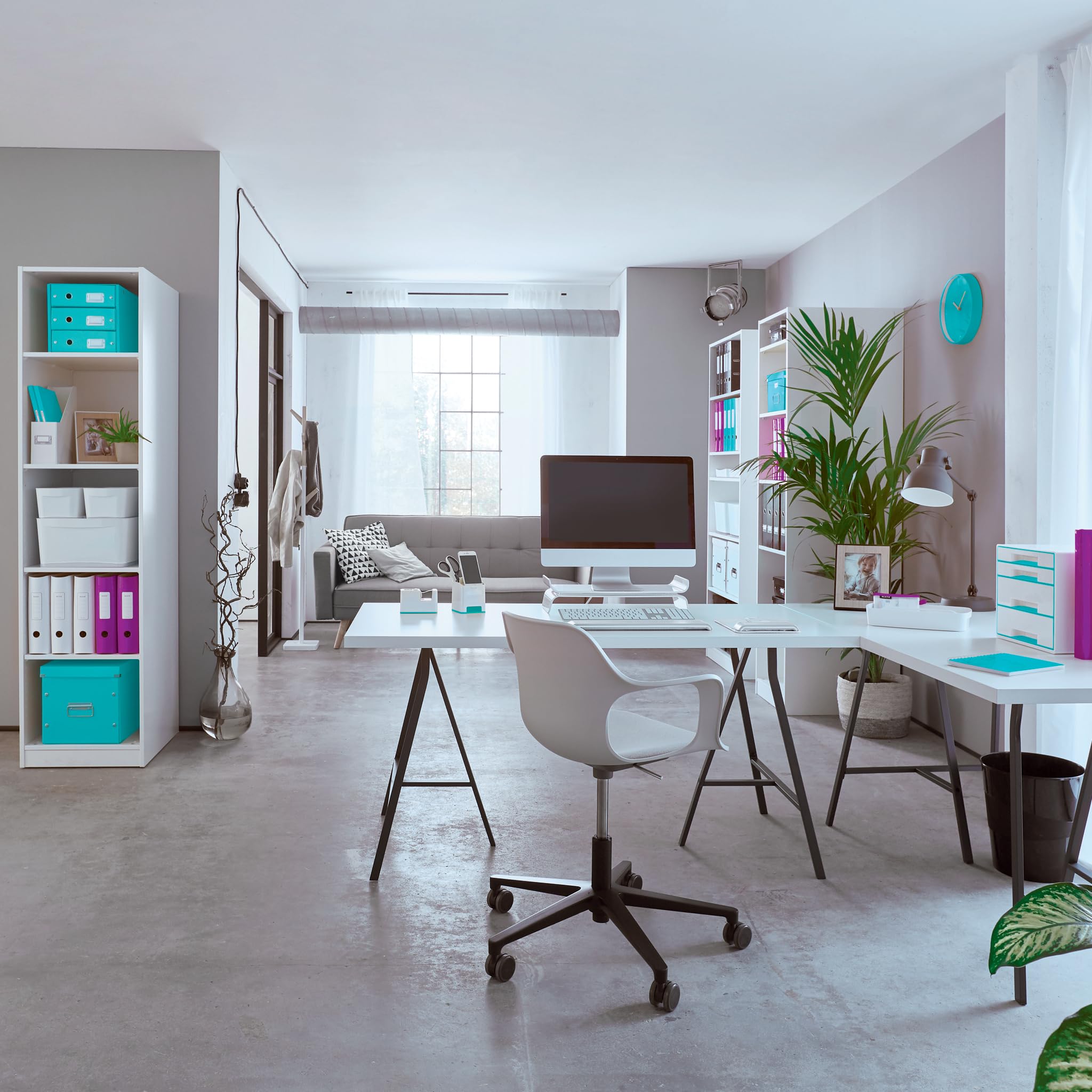 Multifunktionaler Ordner in leuchtender violetter Metallic-Farbe, Rückenbreite 6, 5 cm, Zur Ablage von ca. 350 Blatt (80 g/m²), Für Zuhause, in der Schule, im Büro oder Unterwegs, A4. Leichte Beschriftung des Etiketts, Individuelle Gestaltung der Etiketten dank Leitz-EasyPrint auf der Leitz-Homepage, Inkl. Selbstklebendem Etikett. 50 Prozent weiteres Öffnen und 20 Prozent schnelleres, beidseitiges Abheften dank stabiler, patentierter 180 Grad-Präzisionsmechanik, Hohe Schliesskraft, Gummiband zum Zusammenhalten des Ordners für sicheren Transport. Leichtes Polyfoam (2, 8 mm), Runder Rücken mit Griffloch für leichteres Tragen, 3 Innentaschen für lose Unterlagen, Visitenkarten und Stift, Schonung der Möbel dank nicht kratzender Oberfläche.