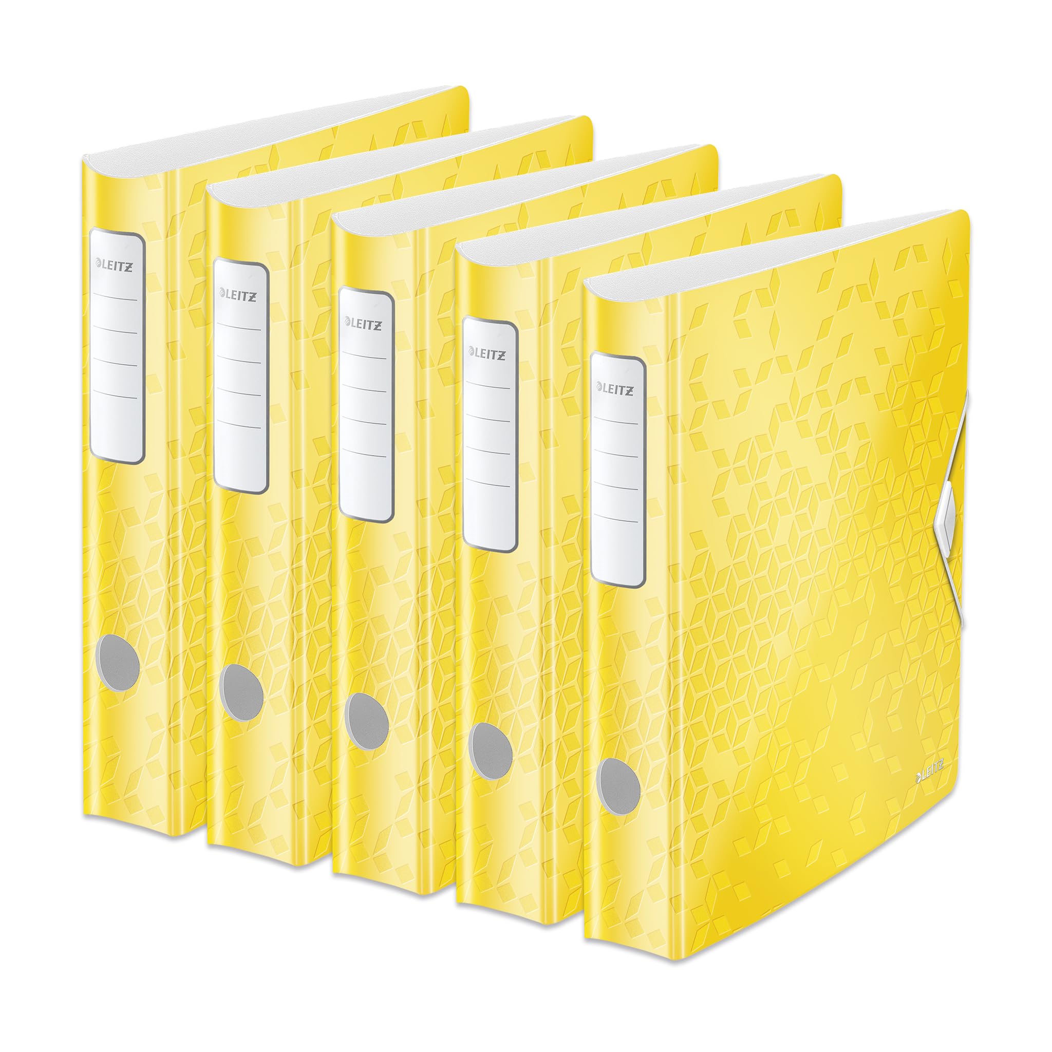 Leitz Qualitäts-Ordner 180° Active WOW, 5er Pack, A4, Schmal, Abgerundeter Rücken, 6,5 cm breit, Gummibandverschluss, Leichtes Polyfoam, Plastik-Ordner, WOW Serie, Gelb, 11070016