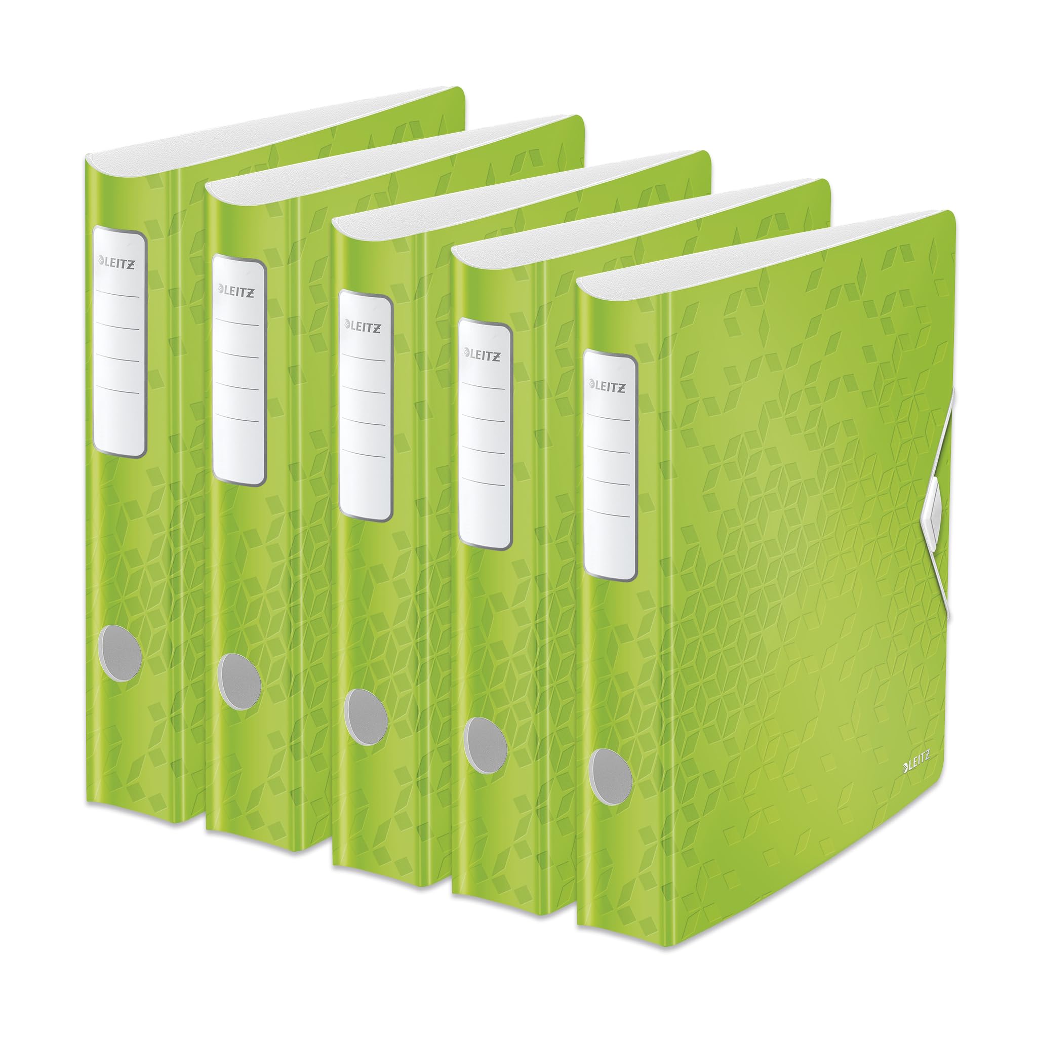 Leitz Qualitäts-Ordner 180° Active WOW, 5er Pack, A4, Schmal, Abgerundeter Rücken, 6,5 cm breit, Gummibandverschluss, Leichtes Polyfoam, Plastik-Ordner, WOW Serie, Grün, 11070054