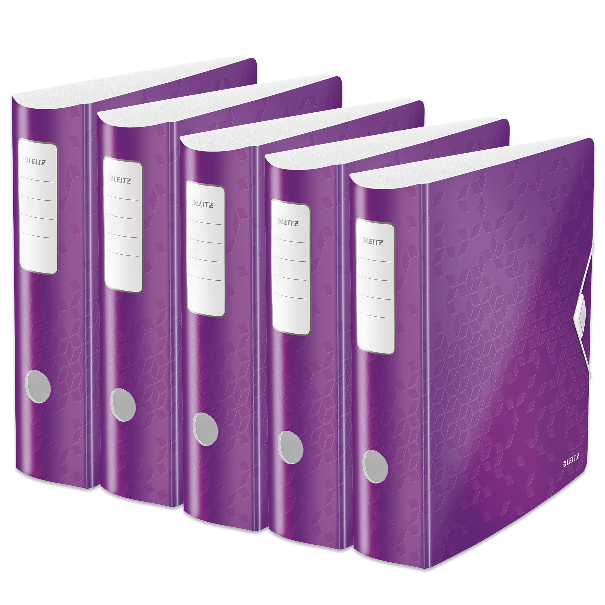 Leitz Qualitäts-Ordner 180° Active WOW, 5er Pack, A4, Breit, Abgerundeter Rücken, 8,2 cm breit, Gummibandverschluss, Leichtes Polyfoam, Plastik-Ordner, WOW Serie, Violett, 11060062