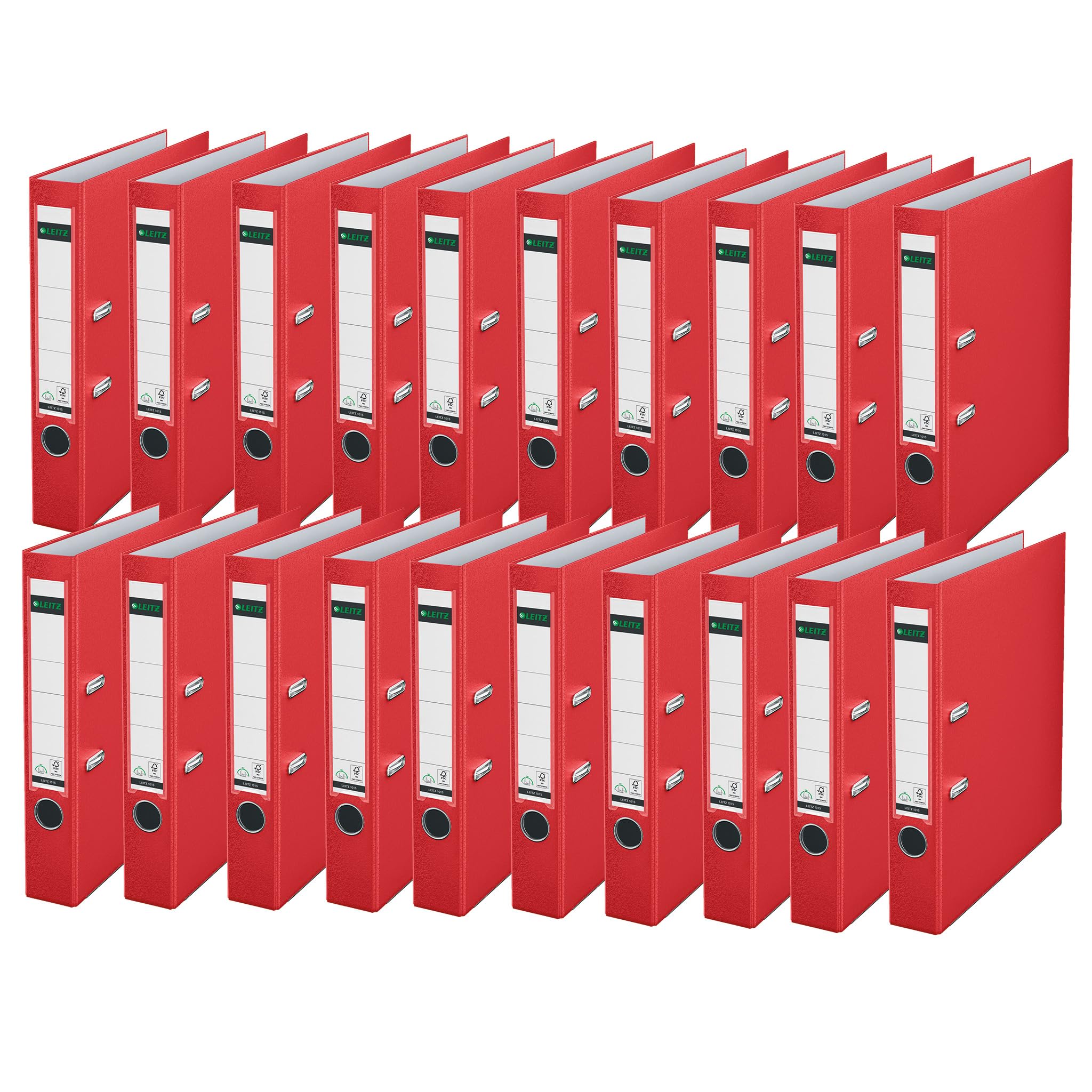 Leitz Qualitäts-Ordner 180° Plastik, 20er Pack, A4, Schmal, Rot, 5,2 cm Rückenbreite, PP-laminierter Einband, 10155025, 50mm
