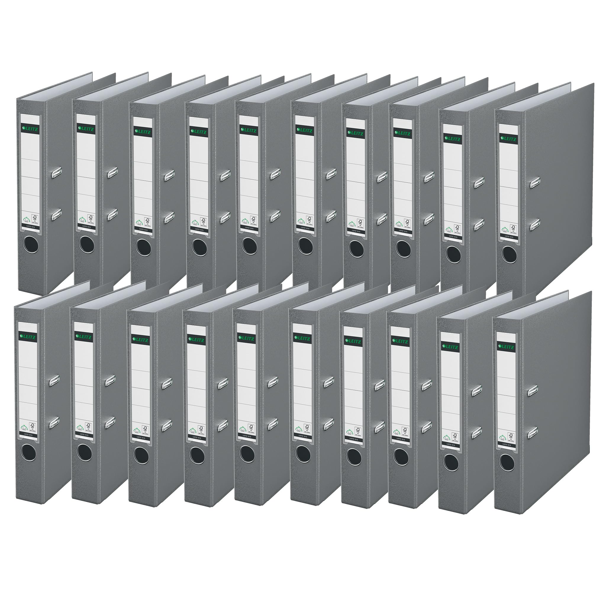 Leitz Qualitäts-Ordner 180° Plastik, 20er Pack, das Original,DIN A4 Aktenordner 5,2 cm, schmal, Kunststoff-Ordner mit PP-laminiertem Einband, Mit 180° Mechanik, Grau, 10155085