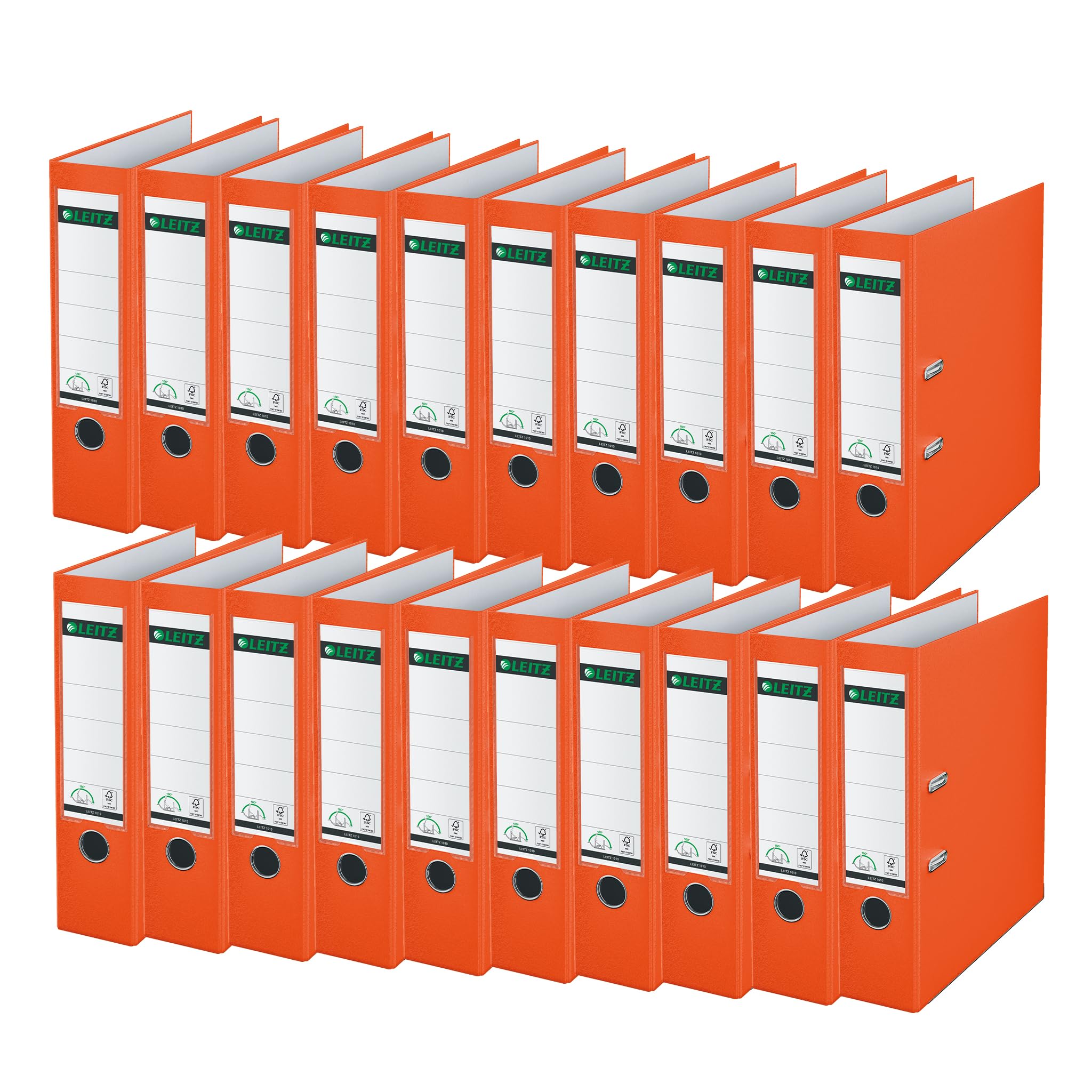 Leitz Qualitäts-Ordner 180° Plastik, 20er Pack, das Original, DIN A4 Aktenordner 8 cm breit, 90% Recycling-Karton, 30% Pre-Consumer Recycling-Kunststoff, Mit 180° Mechanik, 600 Blatt, Orange, 10105045