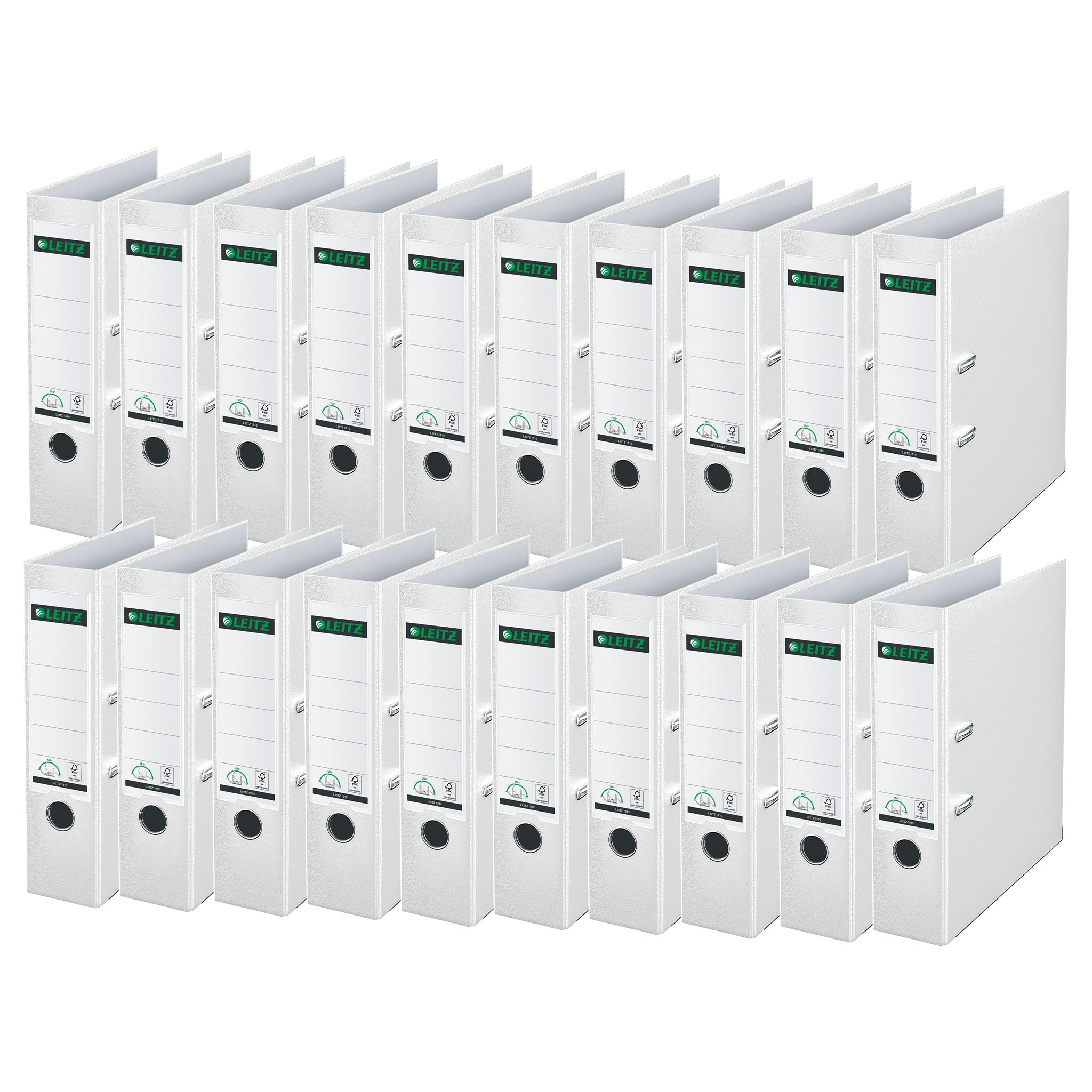 Leitz Qualitäts-Ordner 180° Plastik, 20er Pack, A4, Weiss, 8,2 cm Rückenbreite, PP-laminierter Einband, 10105001
