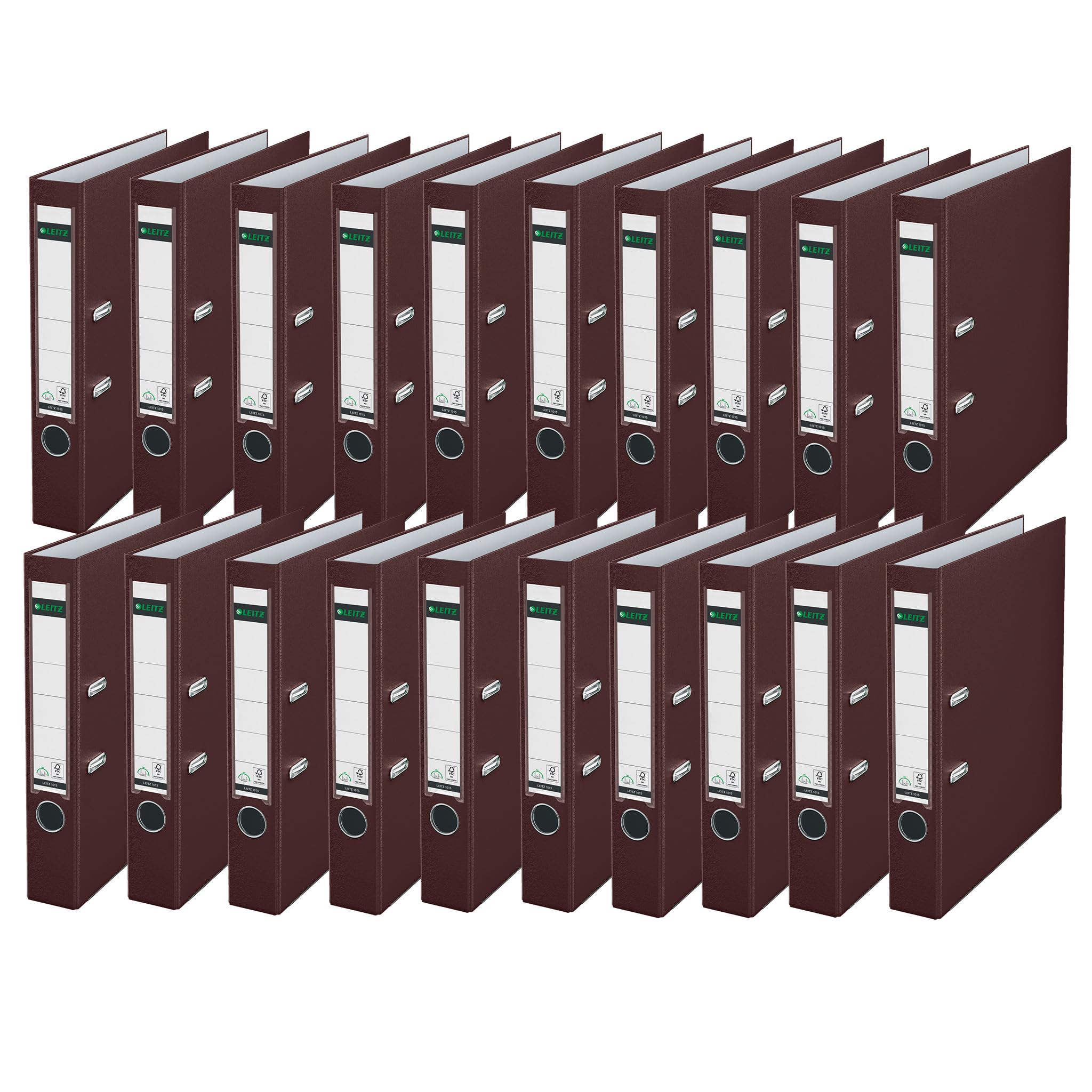 Leitz Qualitäts-Ordner 180° Plastik, 20er Pack, A4, Schmal, Braun, 5,2 cm Rückenbreite, PP-laminierter Einband, 10155075