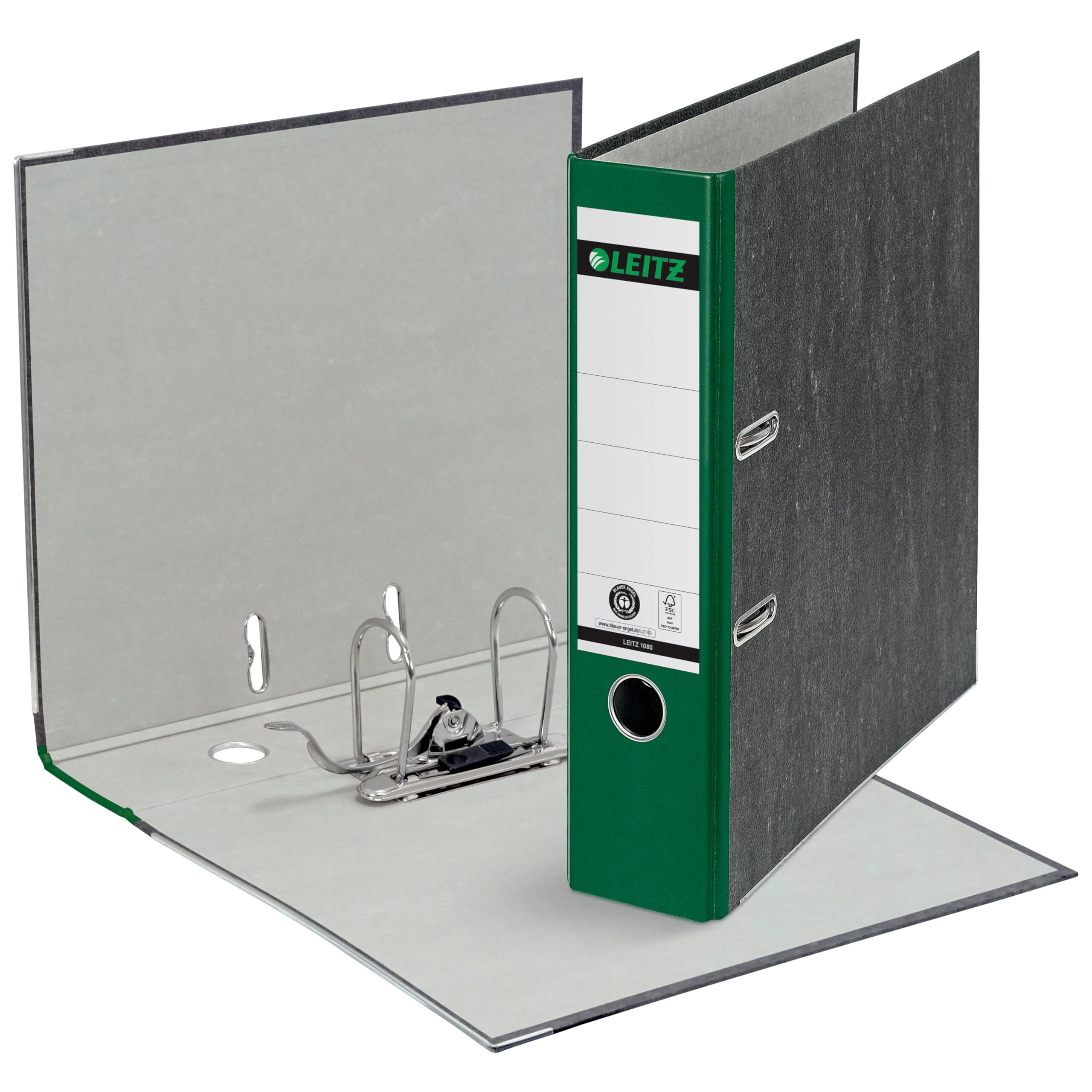 Leitz Qualitäts-Ordner, das Original, DIN A4 Aktenordner 8 cm breit, Wolkenmarmor-Papier, Recycling-Ordner, Blauer Engel, Mit 180° Mechanik, Höchste Stabilität (Breit, Grün, 10 Stück)