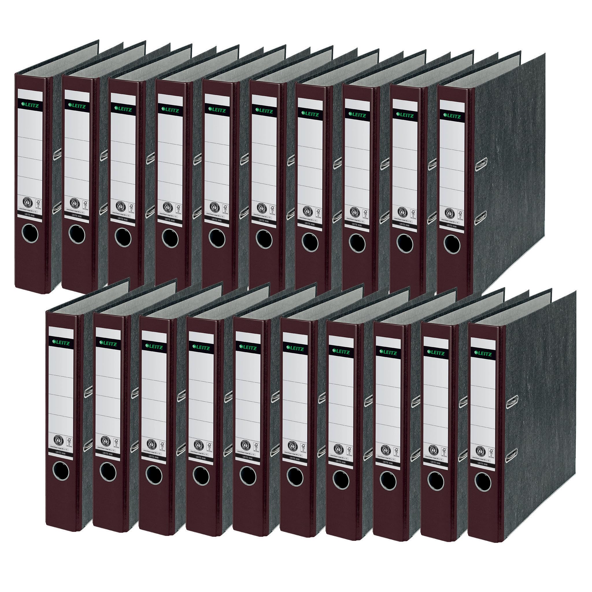 Leitz Qualitäts-Ordner, 20er Pack, das Original, DIN A4 Aktenordner schmal, 5 cm breit, Wolkenmarmor-Papier, Recycling-Ordner, Blauer Engel, Mit 180° Mechanik, Höchste Stabilität, Braun, 10505075