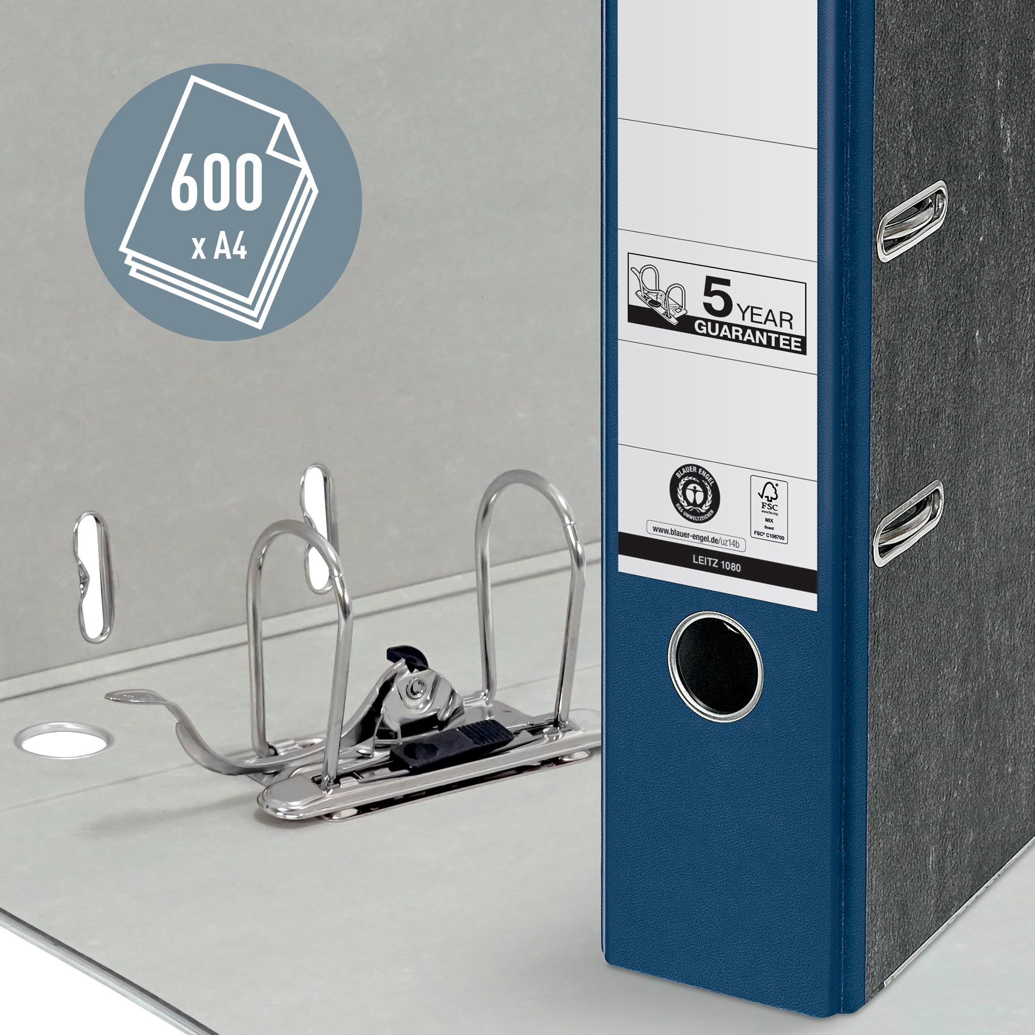 Leitz Qualitäts-Ordner 180°, A4, Karton, 8 cm Rückenbreite, Wolkenmarmor-Papier, Blauer Rücken, 10805035