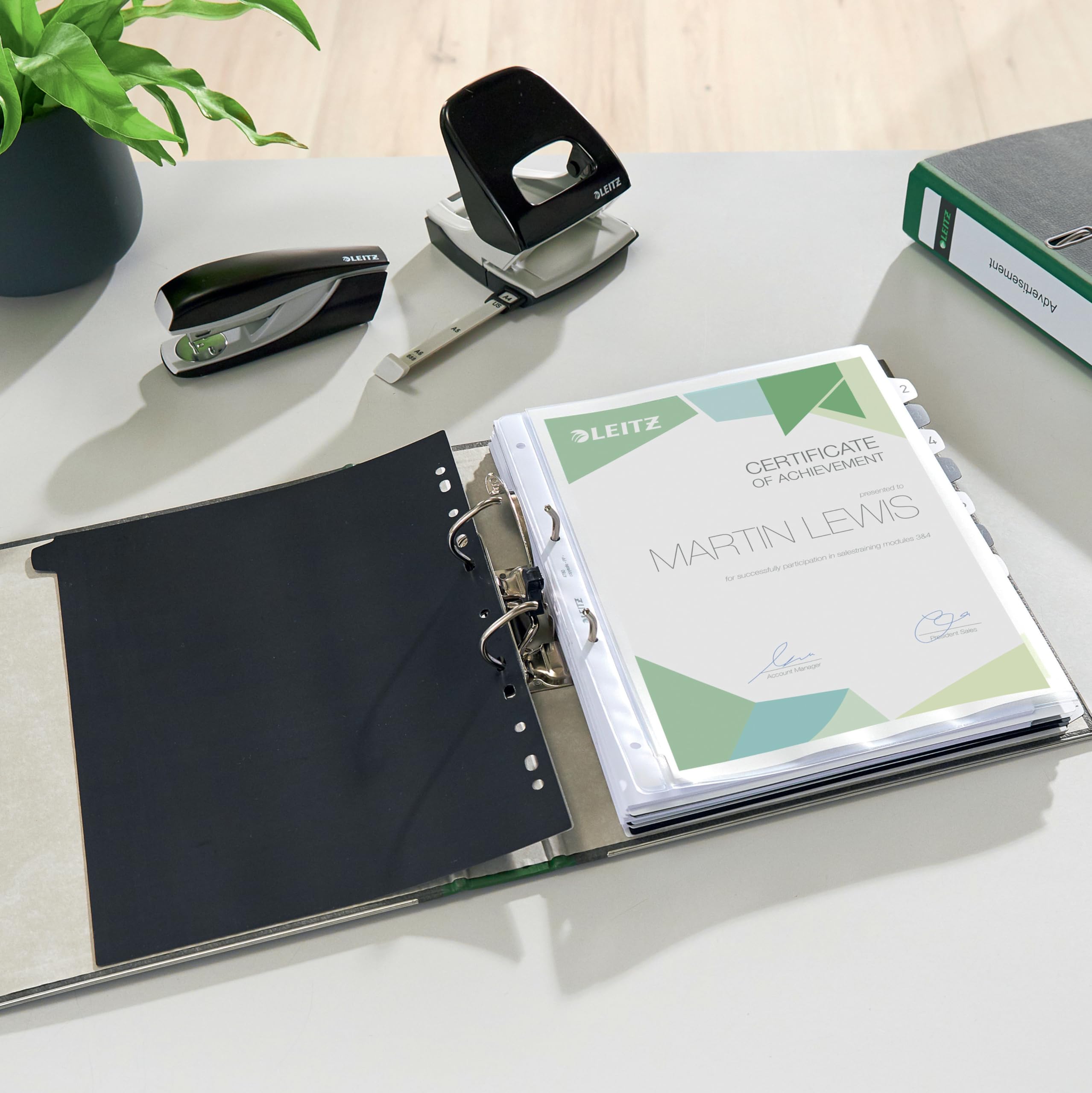 Leitz Qualitäts-Ordner 180°. Der Leitz Qualitäts Ordner mit Wolkenmarmor Papier ist der Klassiker für jedes Büro mit Schlitzen, Griffloch, Kantenschutz, Deckblatt und aufgeklebtem Rückenschild. Format: für A4, 318 x 285 mm; Rückenbreite: 52 mm. Mit Kantenschutz und Griffloch für eine sichere und komfortable Handhabung, Schlitze im Vorderdeckel für optimale Stabilität. Tag für Tag höchste Qualität.