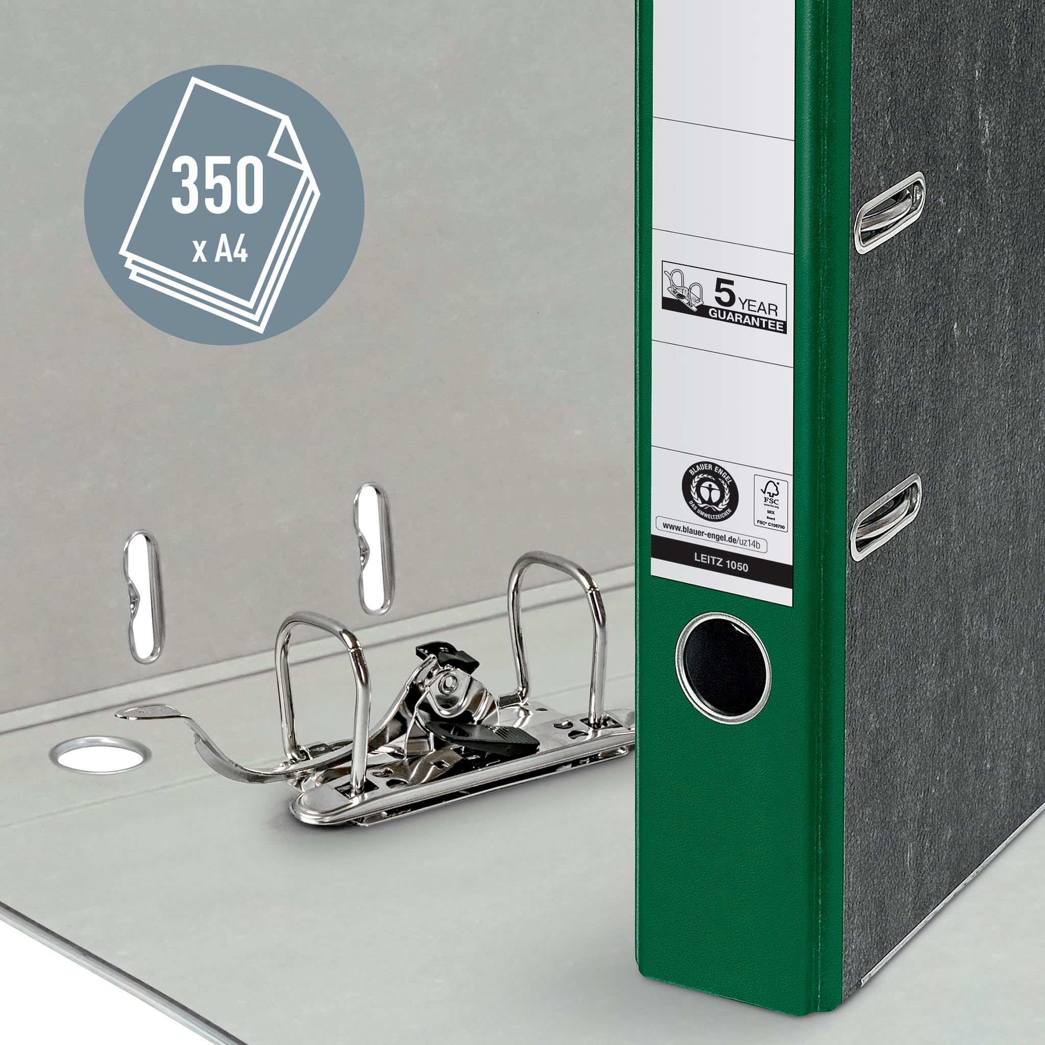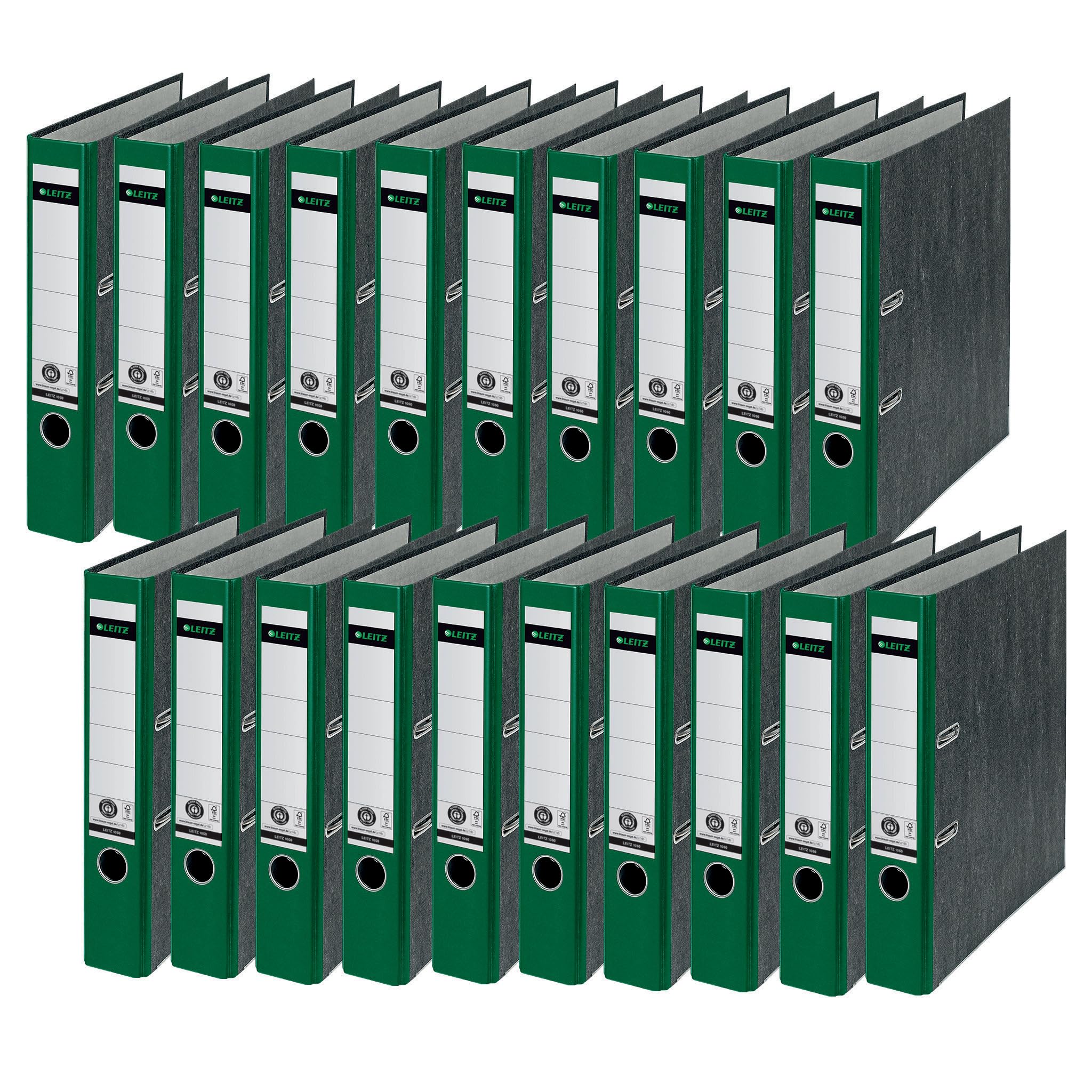 Leitz Qualitäts-Ordner, 20er Pack, das Original, DIN A4 Aktenordner schmal, 5 cm breit, Wolkenmarmor-Papier, Recycling-Ordner, Blauer Engel, Mit 180° Mechanik, Höchste Stabilität, Grün, 10505055