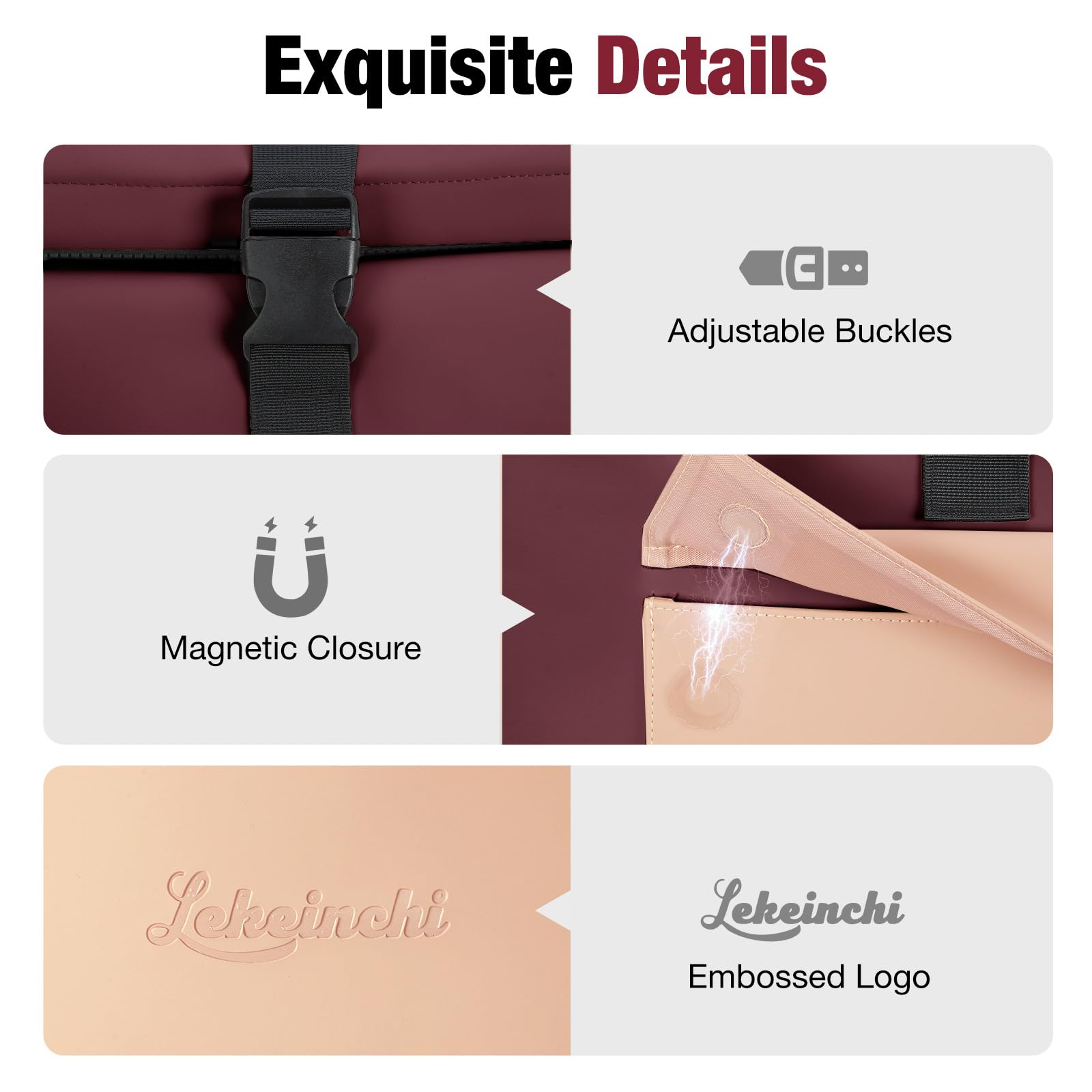 Lekeinchi Rolltop Laptop Rucksack Package: 1 backpack 1 clip Product Details: Material: matte polyurethane fabric Formal Size: 30 * 12 * 43 cm (LWH) Expanded Size: 30 * 12 * 56 cm (LWH) Weight: 890g/ 1.96 lbs Features: The roll-top design makes this a very adaptable bag (16 to 20 Liters),you can roll down or unroll the top with the buckles to fit your needs. Comes with a clip on the side molle system to attach extra pouches and accessories. The back zipper opening allows easy access to the main compartment. Made of durable and waterproof fabric, and easy to wipe clean. Smart front pocket, inner pocket, and latop pocket keep essentials well organized and easy to find. A well padded sleeve keeps your 17'' laptop safe. Large main compartment easily hold your clothes, camera, books, water bottle, etc. Well-padded back panel and shoulder straps are comfortable to wear even when the bag is full. Casual and unisex style for men and women, perfect for work, travel and biking. After-sale Warranty Lekeinchi Laptop backpack provides 30 days money-back guarantee for any reason and 180 days warranty for quality-related issues.