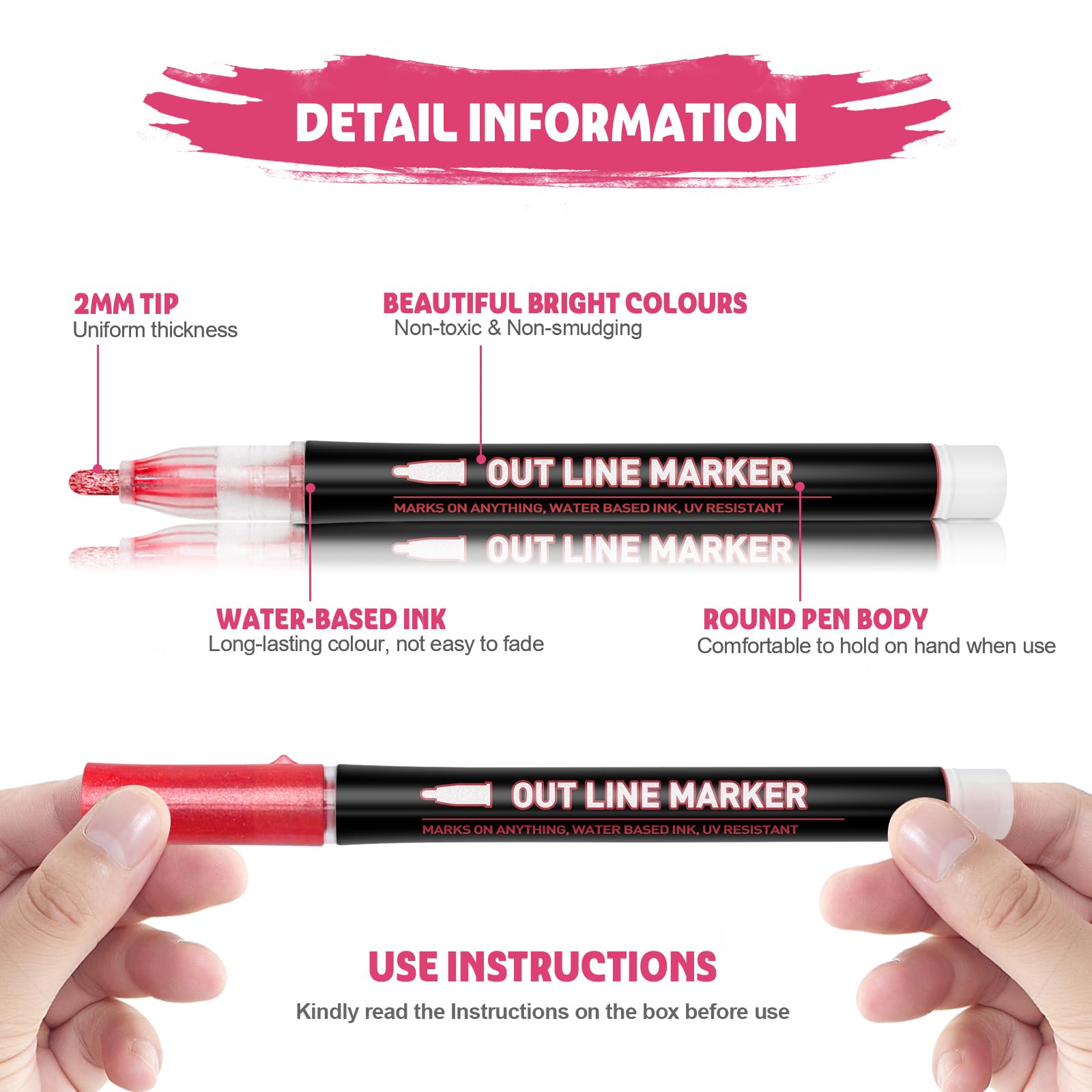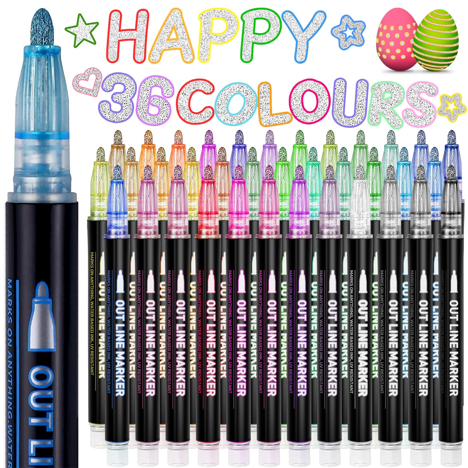 Lenski Geschenke für Mädchen, Glitzerstifte Magische Stifte Kinder Adventskalender Füllung Mädchen Geschenke 4-12 Jahre, 36 Outline Stifte Zauberstifte Metallic für Scrapbooking, Bastelset Kinder