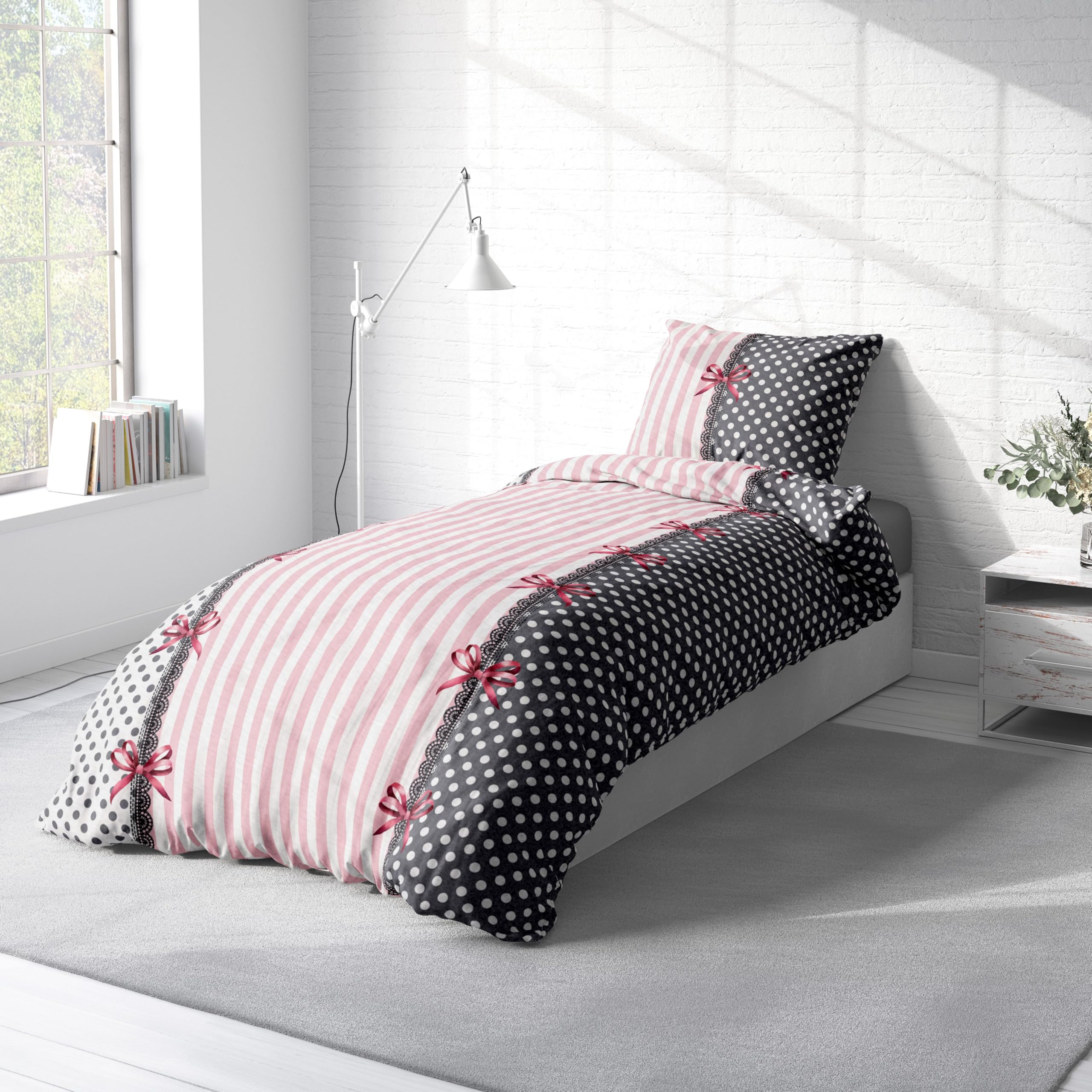 Leonado Vicenti Winter Bettwäsche Thermo Fleece Flausch Kuschelig Warme Garnitur Bettbezüge Set, Grösse:3 teilig 240x220 cm, Farbe:Rüsch rosa grau