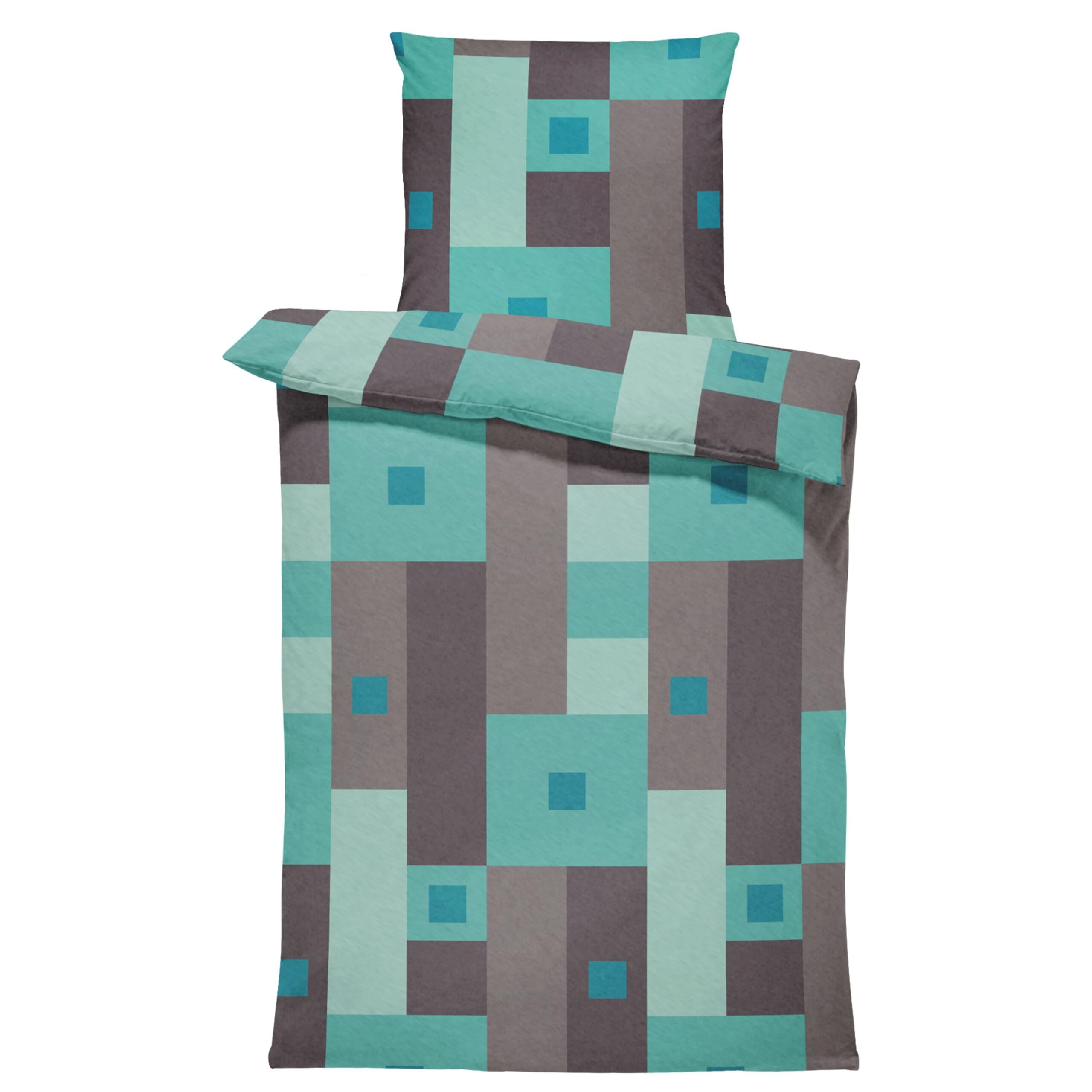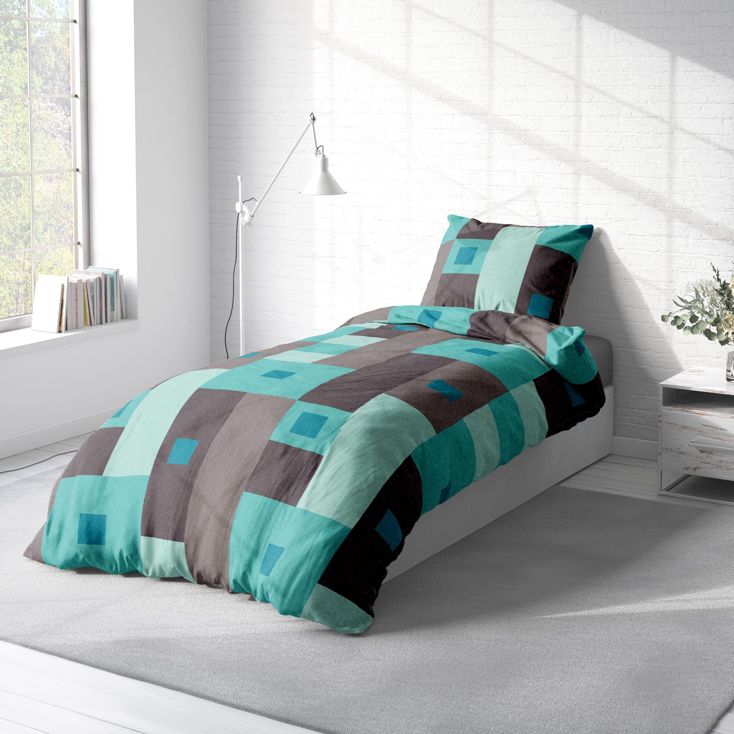 Leonado Vicenti Winter Bettwäsche Thermo Fleece Flausch Kuschelig Warme Garnitur Bettbezüge Set, Grösse:2 teilig 135x200 cm, Farbe:Karo türkis grau