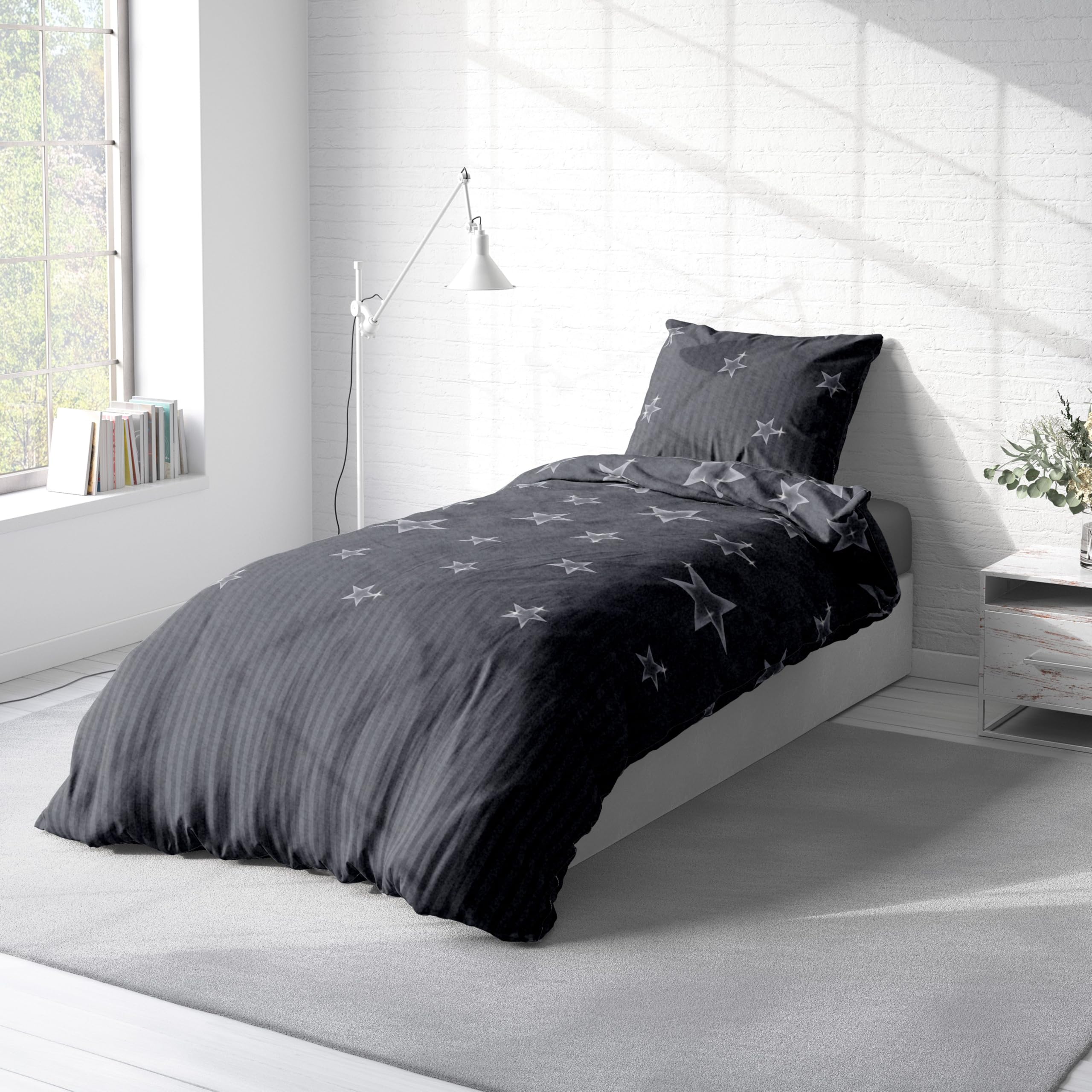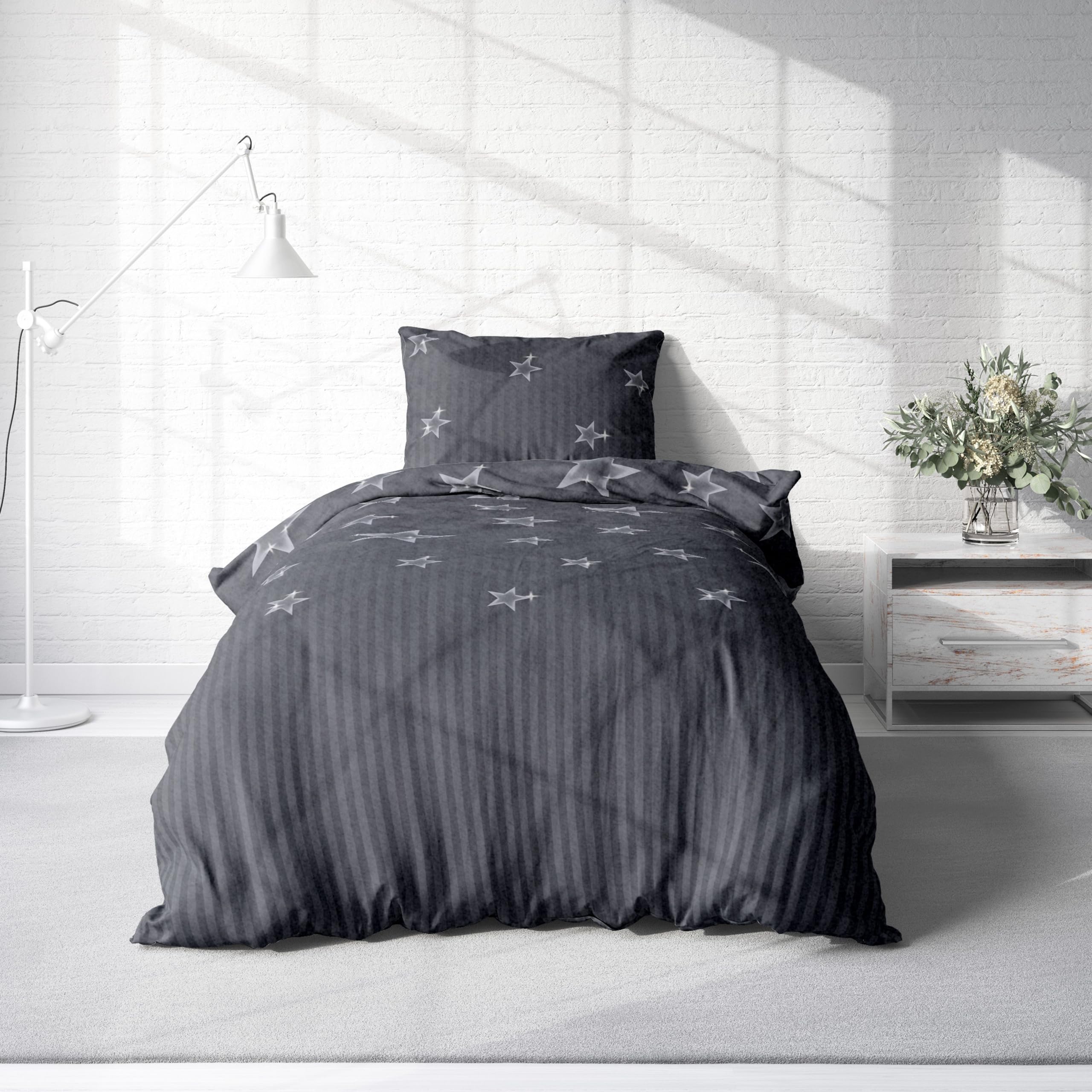 Leonado Vicenti Winter Bettwäsche Thermo Fleece Flausch Kuschelig Warme Garnitur Bettbezüge Set, Grösse:3 teilig 200x200 cm, Farbe:Sterne grau