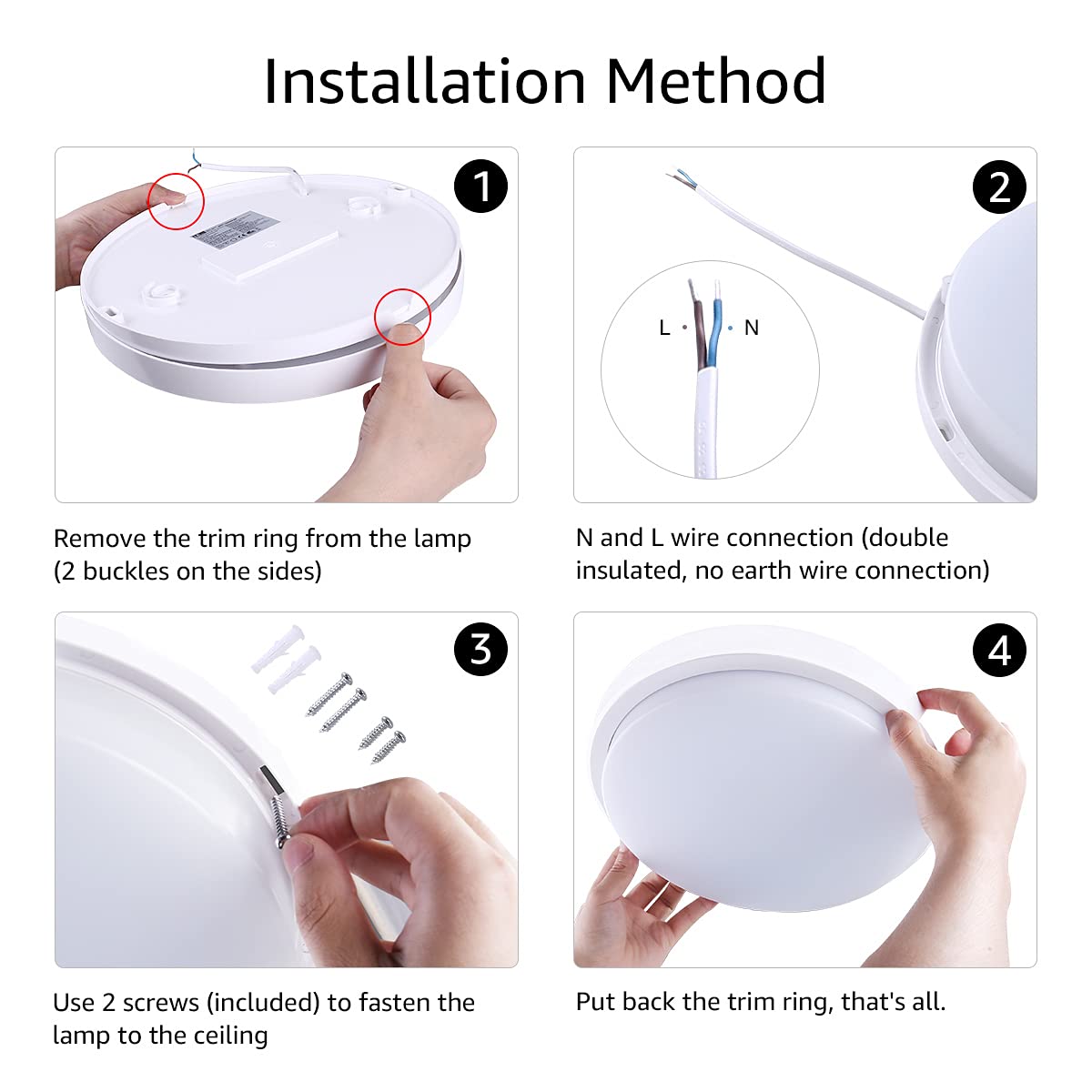 Lepro 24W LED Deckenlampe, LED Deckenleuchte IP54 Wasserfest, 6000K 2200LM Badezimmer Lampe, Rund Badlampe Decke, ideal für Bad Schlafzimmer Flur Küche Wohnzimmer, Kaltweiss, Ø26.5cm