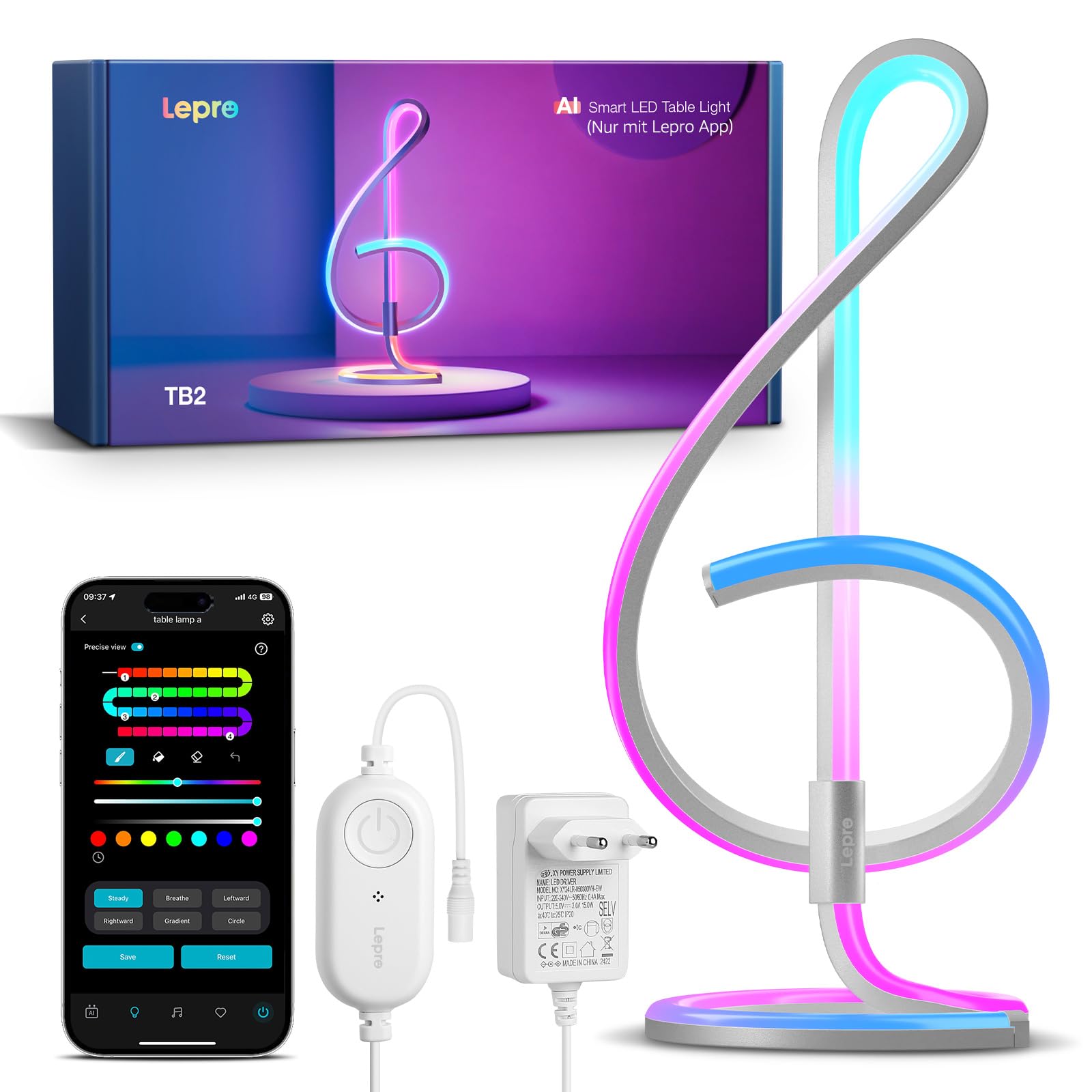 Lepro AI Smart Tischlampe TB2, Personalisierter KI-Lichtdesigner, Musik Sync/APP Sprachsteuerung Tischleuchte, Table Lampe Dimmbar, RGB+IC-Technologie, Kompatibel mit Alexa/Google, Keine Fernbedienung