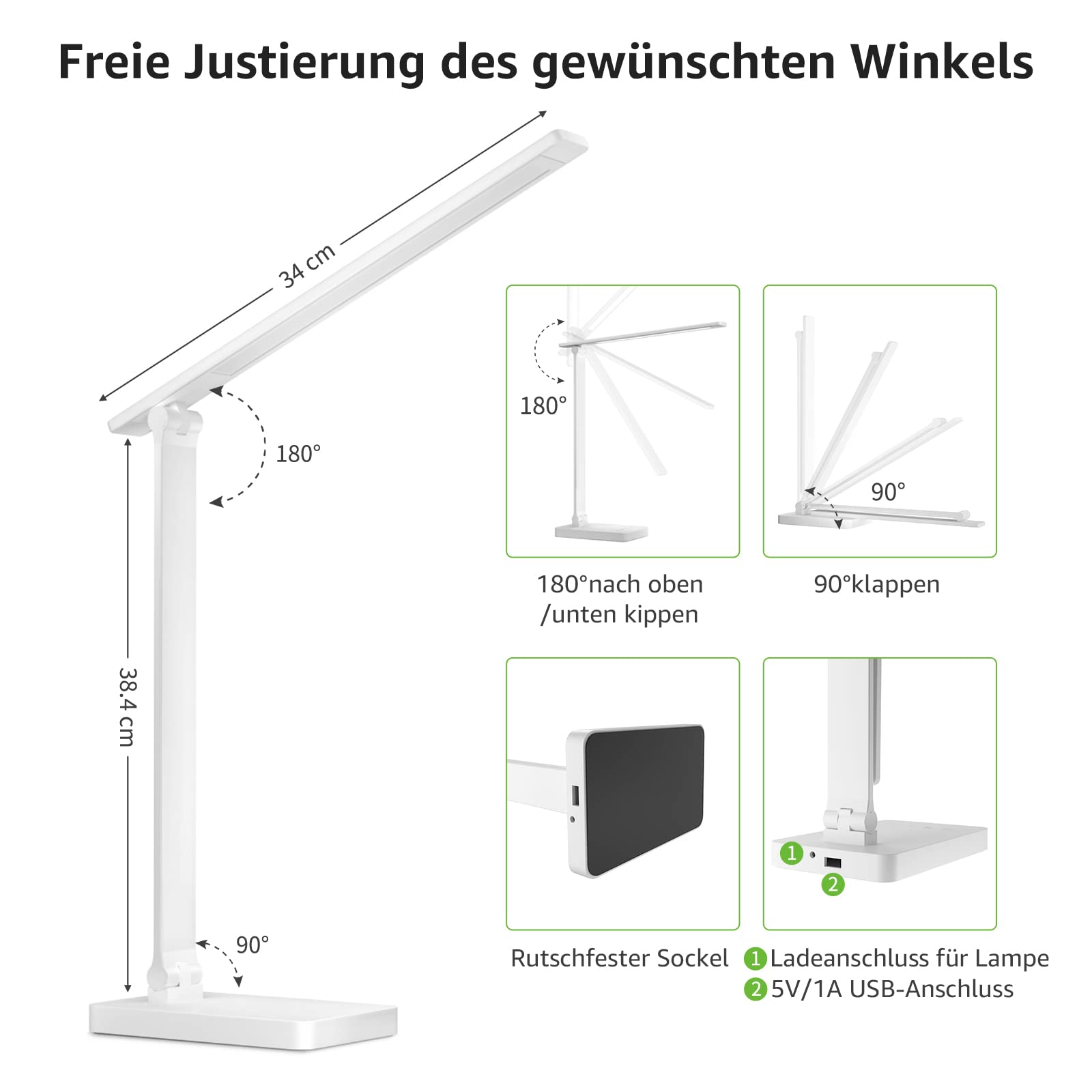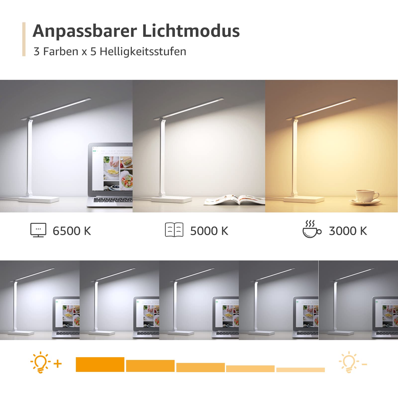 [ Personalisieren Sie Ihr Licht ]: Mit 3 Farb 5 Modi, der Helligkeitsstufen, Timmer- und Speicherfunktion kann die LED Schreibtischlampe verwendet werden, um sich optimal an Ihre Bedürfnisse anzupassen.[ Einfache Berührungssteuerung ]: Bürolampe mit praktischem Berührungssensor. Dank Speicherfunktion wird der eingestellte Helligkeits- und Farbmodus beim nächsten Einschalten der Tischlampe automatisch erneut abgerufen.[ Sanft zu den Augen ]: Beleuchtet jeden Winkel mit einladendem, flackerfreiem Licht, bei dem Sie ideal lesen, arbeiten oder lernen können. schonend für die Augen, verursacht weniger Ermüdungserscheinungen.[ Nachttischlampe 655 LM energieeffizient ] : verbraucht 75% weniger Energie als eine herkömmliche Glühlampe bei gleicher Helligkeit.[ Sicherheit & Lange Lebensdauer ]: Die Betriebsspannung beträgt 12V, mehr Sicherheit und stabile extrem niedrige Hitze, DiesesTischleuchte ist weder giftig noch emittiert keine UV-Strahle. Diese Tischleuchte im minimalistischem design ist ideal für Erwachsene und Kinder. Auch im Büro als Dekoration findet sie Verwendung.