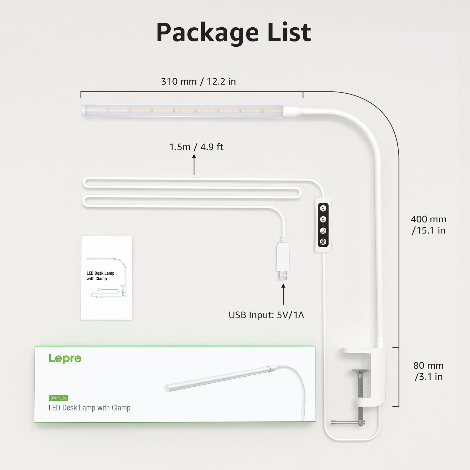 Lepro LED Schreibtischlampe Klemmbar, Tischlampe Architektenlampe mit Schwenkarm, Augenschutz Klemmleuchte USB, 3 Farben & 10 Helligkeitsstufen Dimmbar Tischleuchte für Büro, Weiss