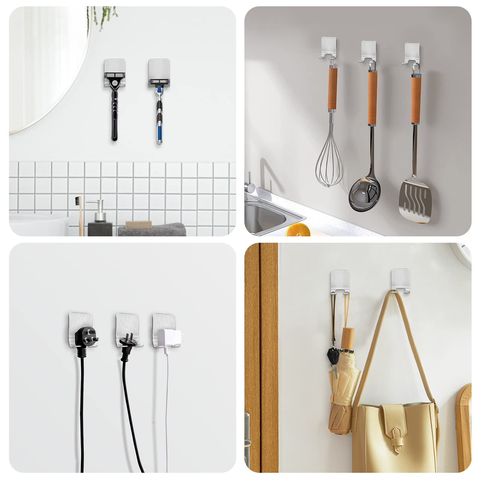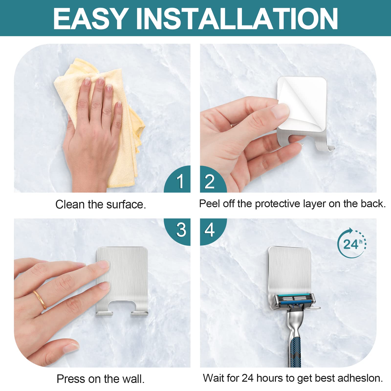 Leryati Rasierer Halterung Dusche, 4 Stück Silber Rasierhalter Dusche Ohne Bohren, Edelstahl Rasierer Halter, Selbstklebende Rasierer aufhänger dusche Geeignet für Tür Wand Badezimmer, Küche