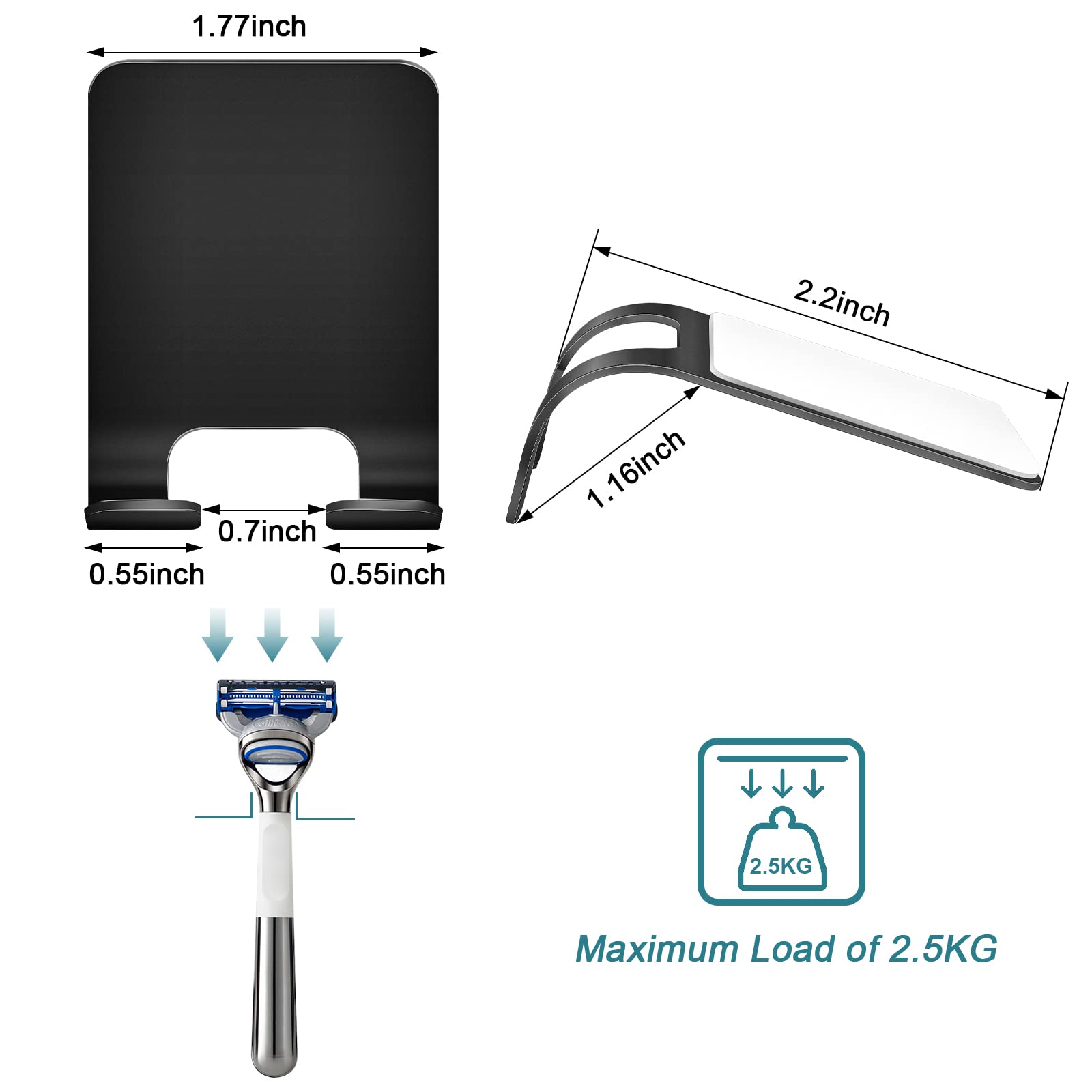 1. Razor Holder Kann an verschiedenen Wänden wie Magneten, Milchglas, Latexwänden und Holzoberflächen verwendet werden.