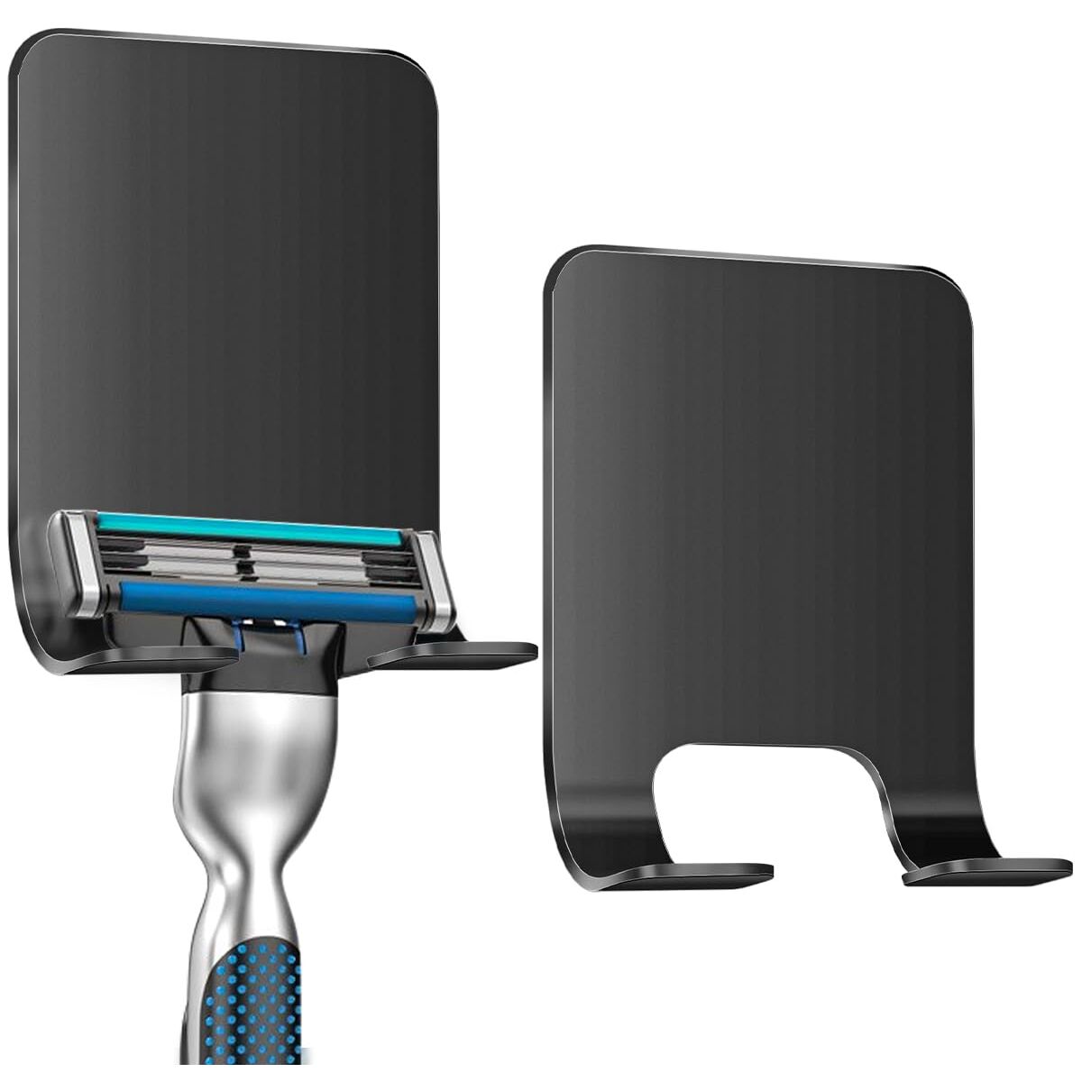 Leryati Rasierer Halterung Dusche, 2 Stück Schwarz Rasierhalter Dusche Ohne Bohren, Edelstahl Rasierer Halter, Selbstklebende Rasierer aufhänger dusche Geeignet für Tür Wand Badezimmer, Küche