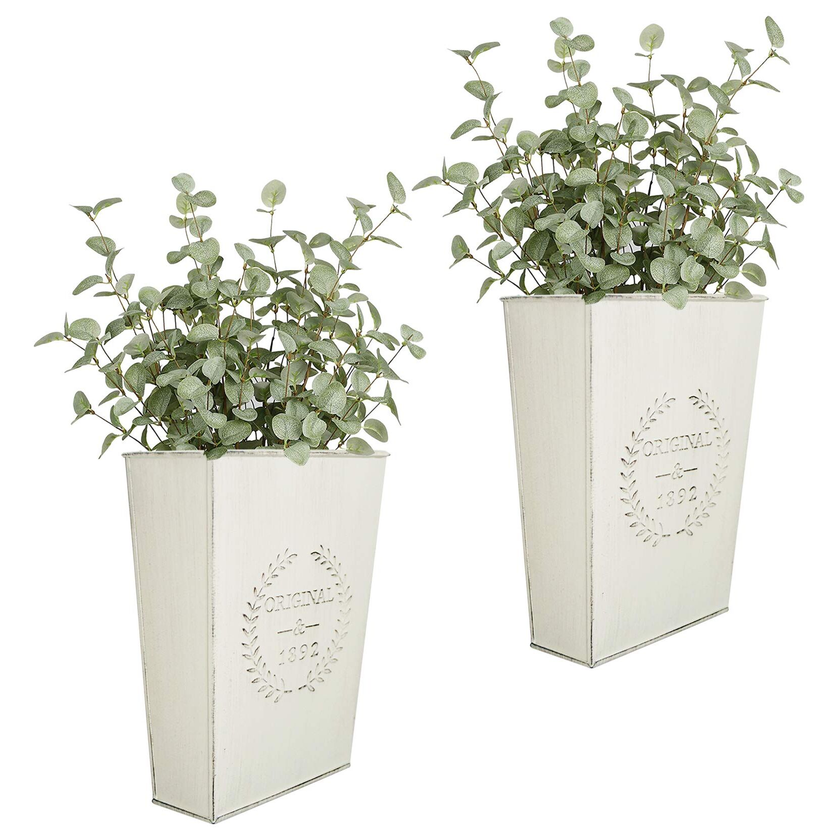 LESEN Set mit 2 Bauernhaus-Metall-Wand-Pflanzgefässen, rustikale Wanddekoration, Land-hängende Wandvase, Box für Pflanzen, Blumen, Heimdekoration