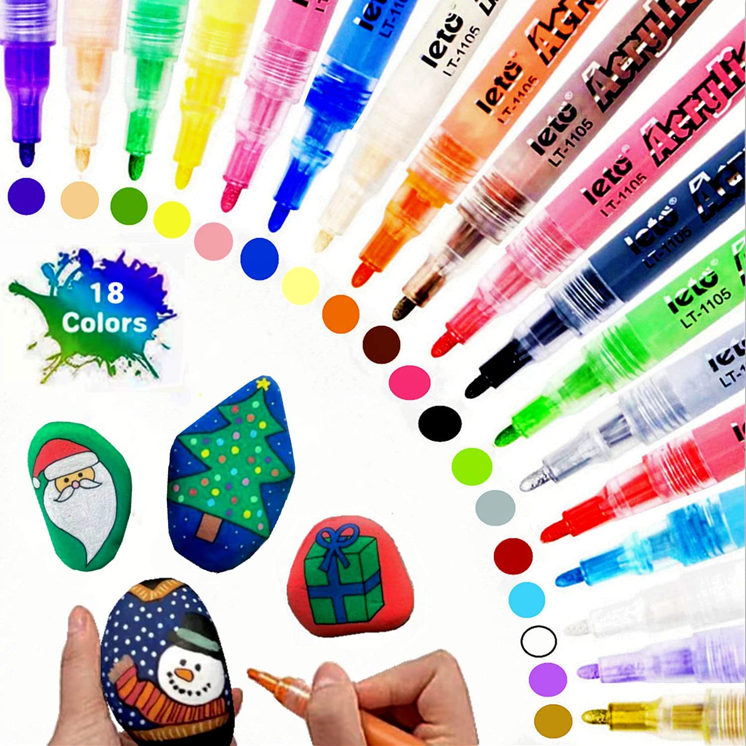 LETO Acrylstifte für Steine Wasserfest,18 Farben Steine Bemalen Stifte acrylic paint für Holz Basteln Papier Glas Keramik Ostern und Weihnachten Kinder DIY (0.7mm Spitze)