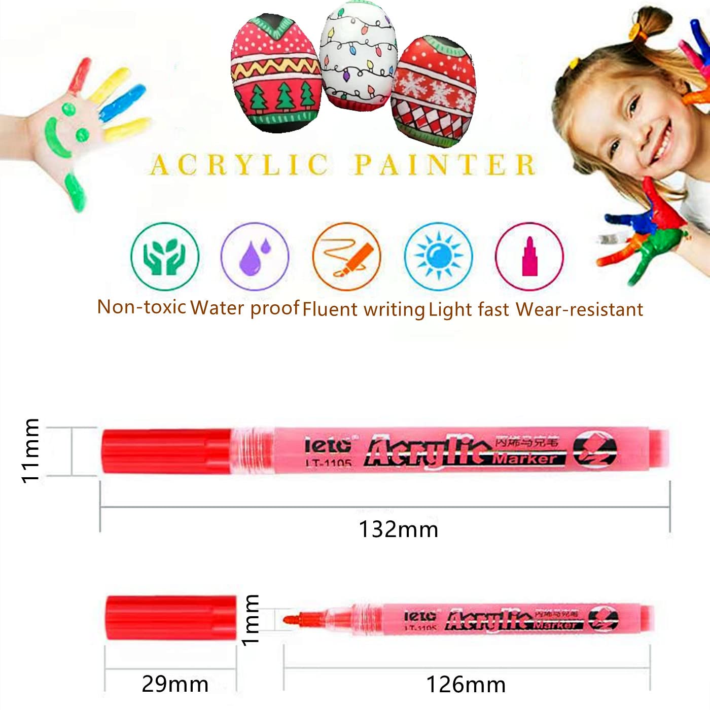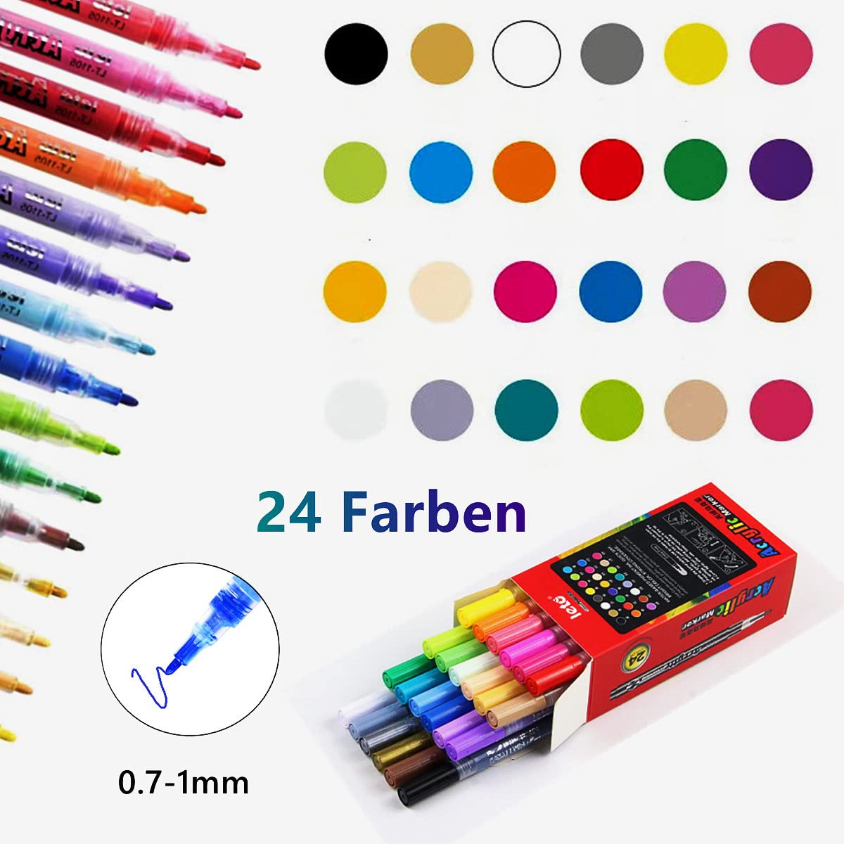 LETO Acrylstifte für Steine Wasserfest,24 Farben porzellanfarbe stifte,Multimarker Stifte Glasmalstifte für Papier, Leinwand, Holz, Glasmalerei, Keramik, Basteln(0.7mm Spitze)