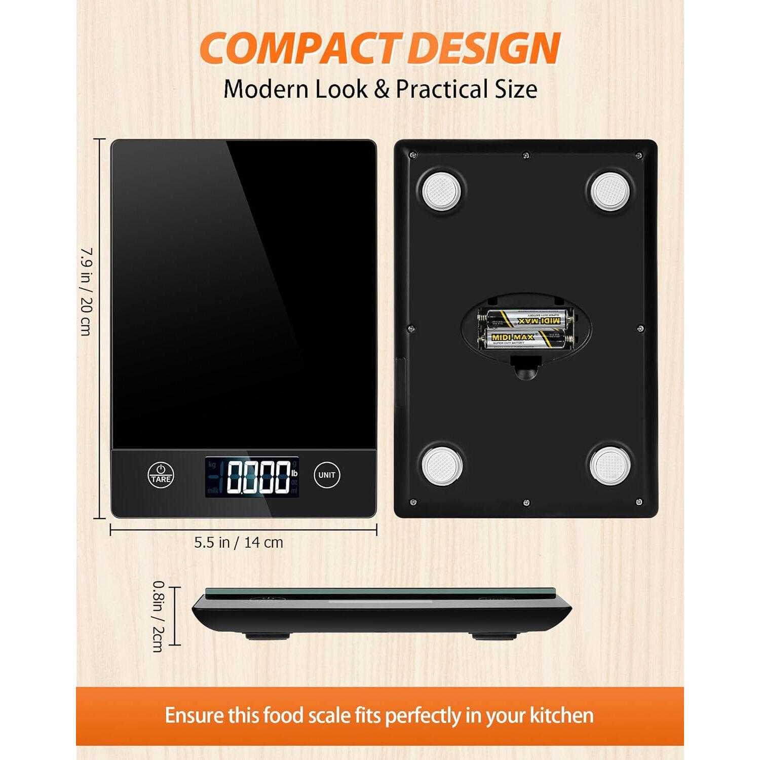 Letron Küchenwaage Digital 10KG Küchenwaagen Glas Digitale Waage Wasserdicht Elektronische Haushaltswaage zum Backen, Tara Funktion, Touch-Taste, 1g Genaue, Schwarz