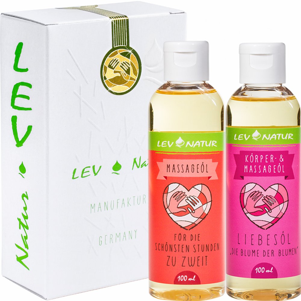 Lev-Natur Massageöl & Gleitöl Set 2 x 100ml, Naturprodukt, Erotiköl, Intimmassage, Unisex, Erwachsene (Paare)