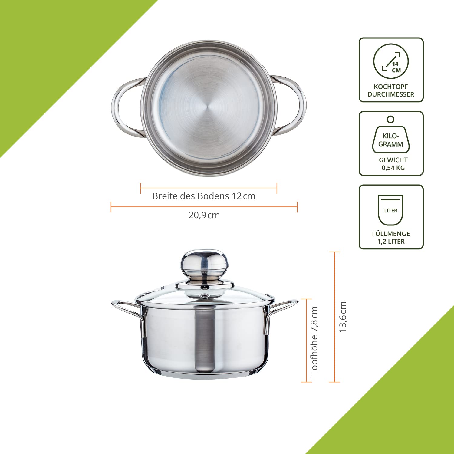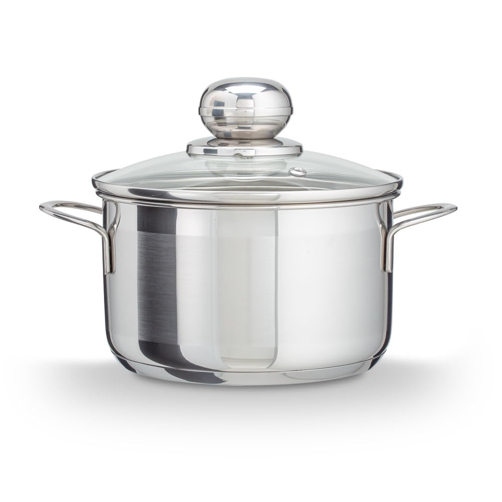 Level One Topf Edelstahl 14 cm Kochtopf Induktion 1,2 Liter, Mini Fleischtopf & Bratentopf mit Glasdeckel für den Backofen, rostfreier Edelstahl, für alle Herdarten geeignet