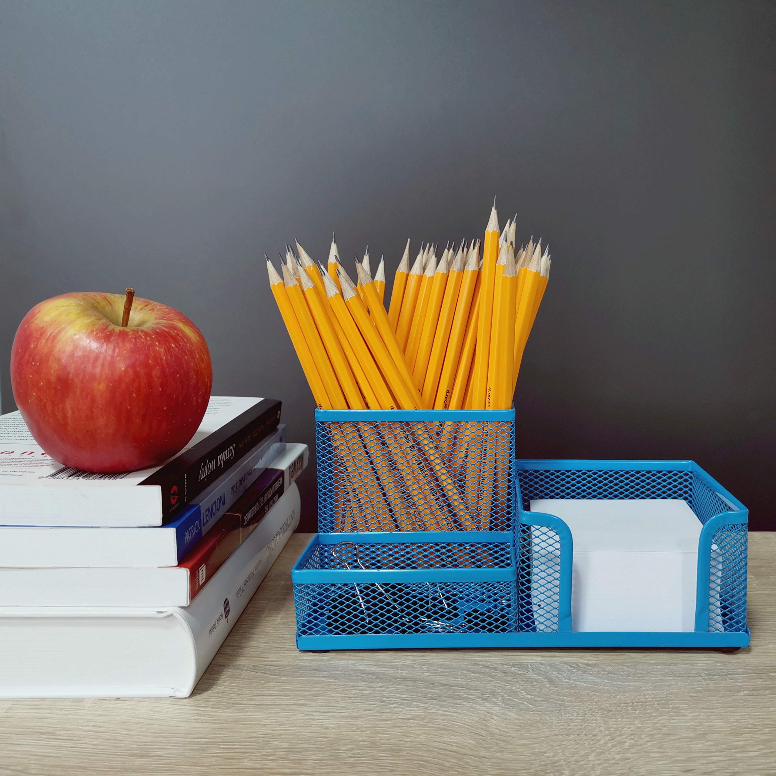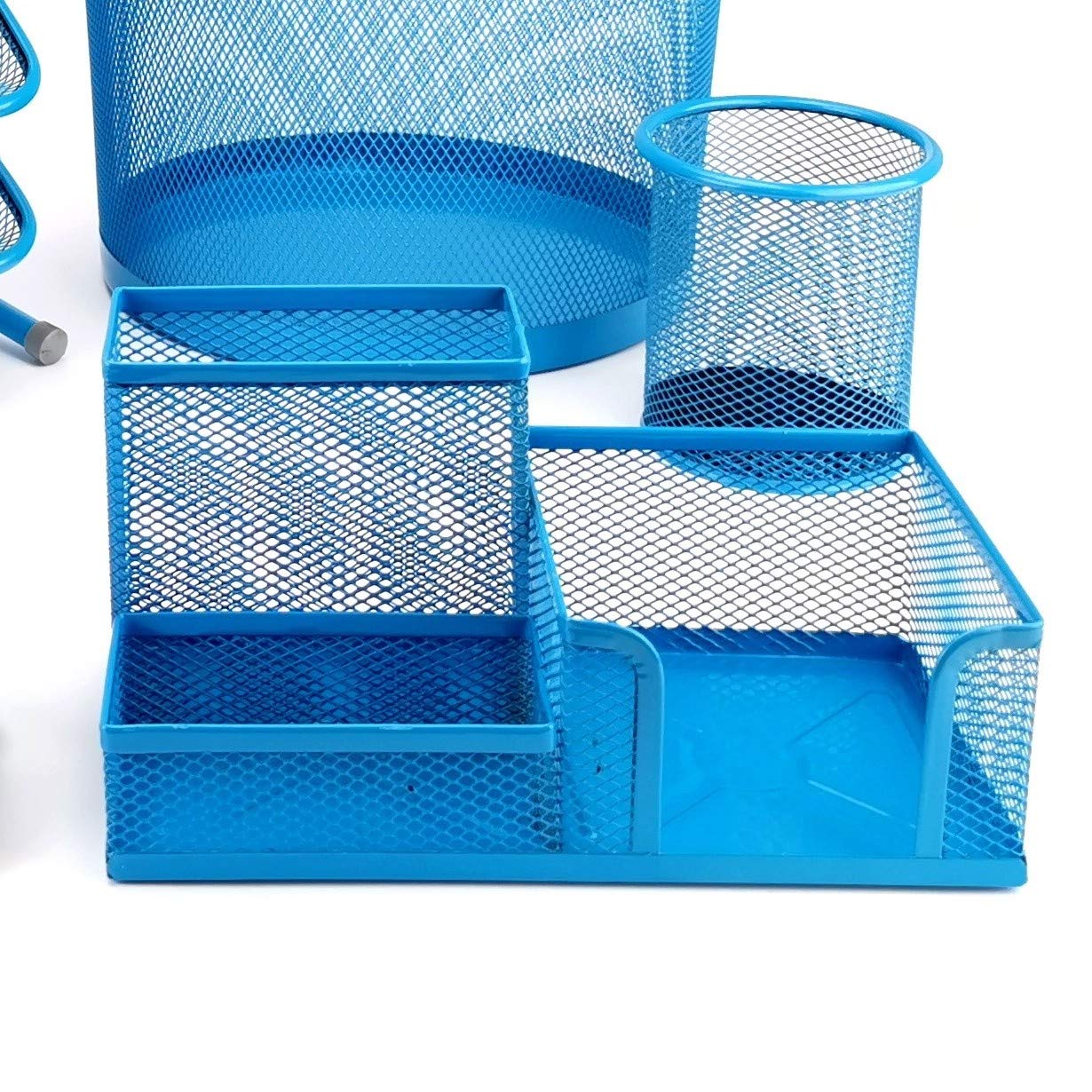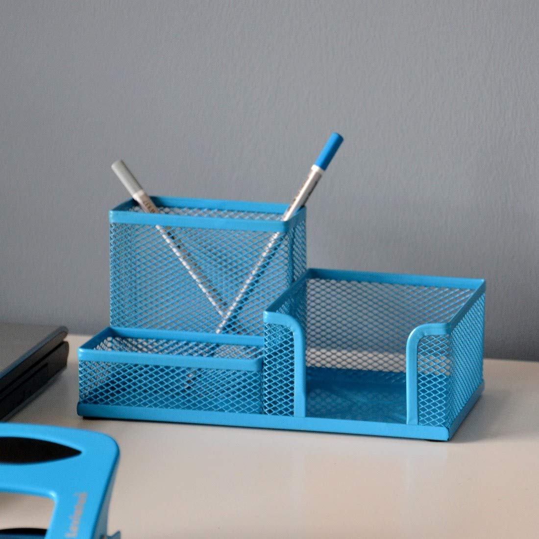 Leviatan Schreibtisch Organizer | Stiftehalter Stifteköcher Tisch-Organizer aus Metall | Büroablage mit Zettelhalter Mesh | 205x103x98mm Blau