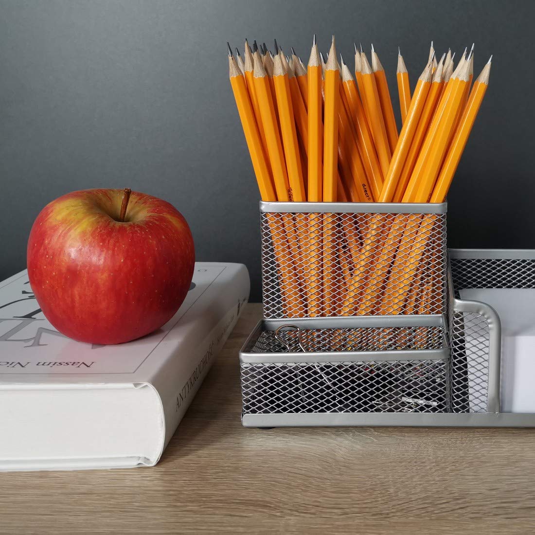 Leviatan Leviatan Schreibtisch Organizer | Stiftehalter Schreibtisch Stifteköcher Tisch-Organizer aus Metall | Büroablage mit Zettelhalter Mesh | 205x103x98mm silberfarben
